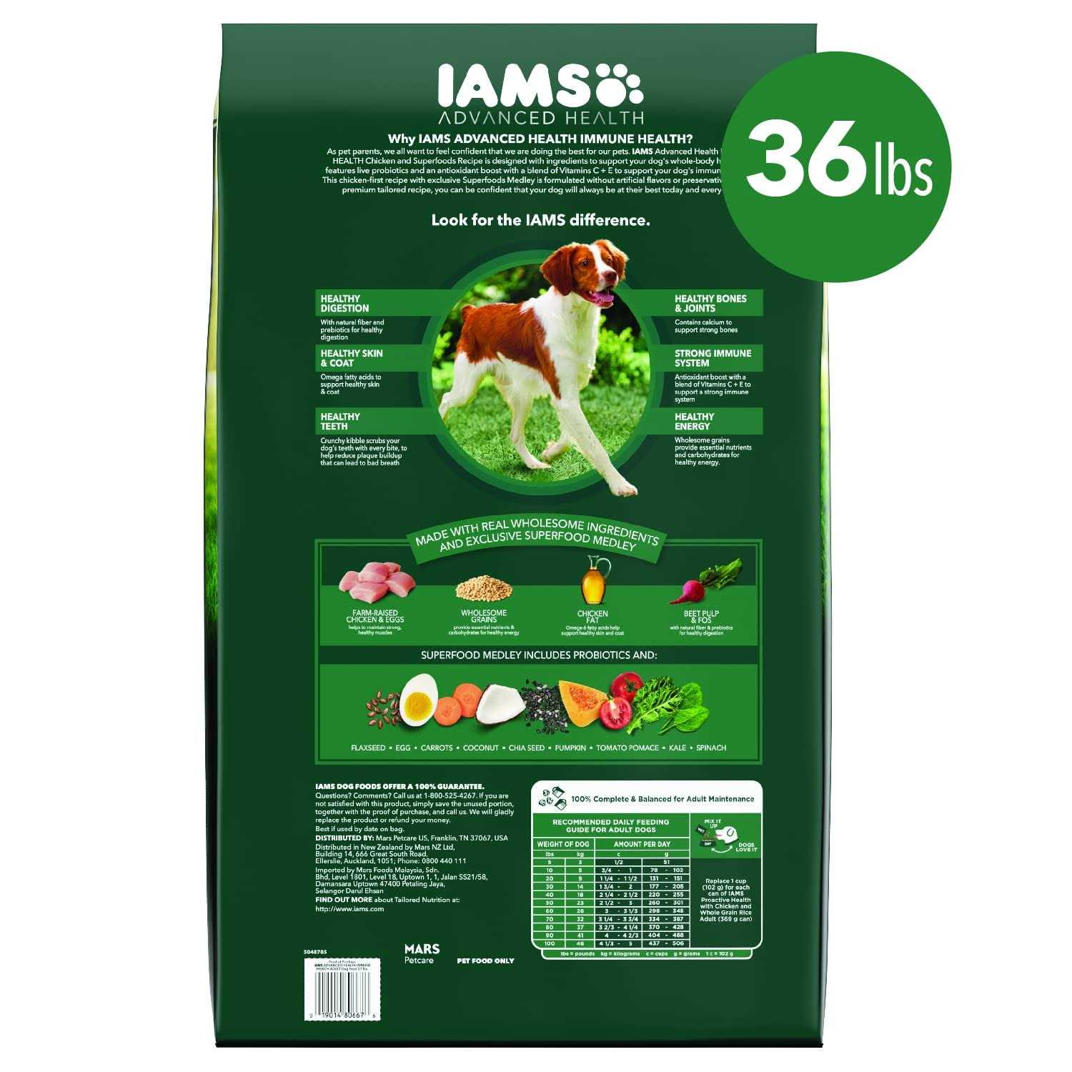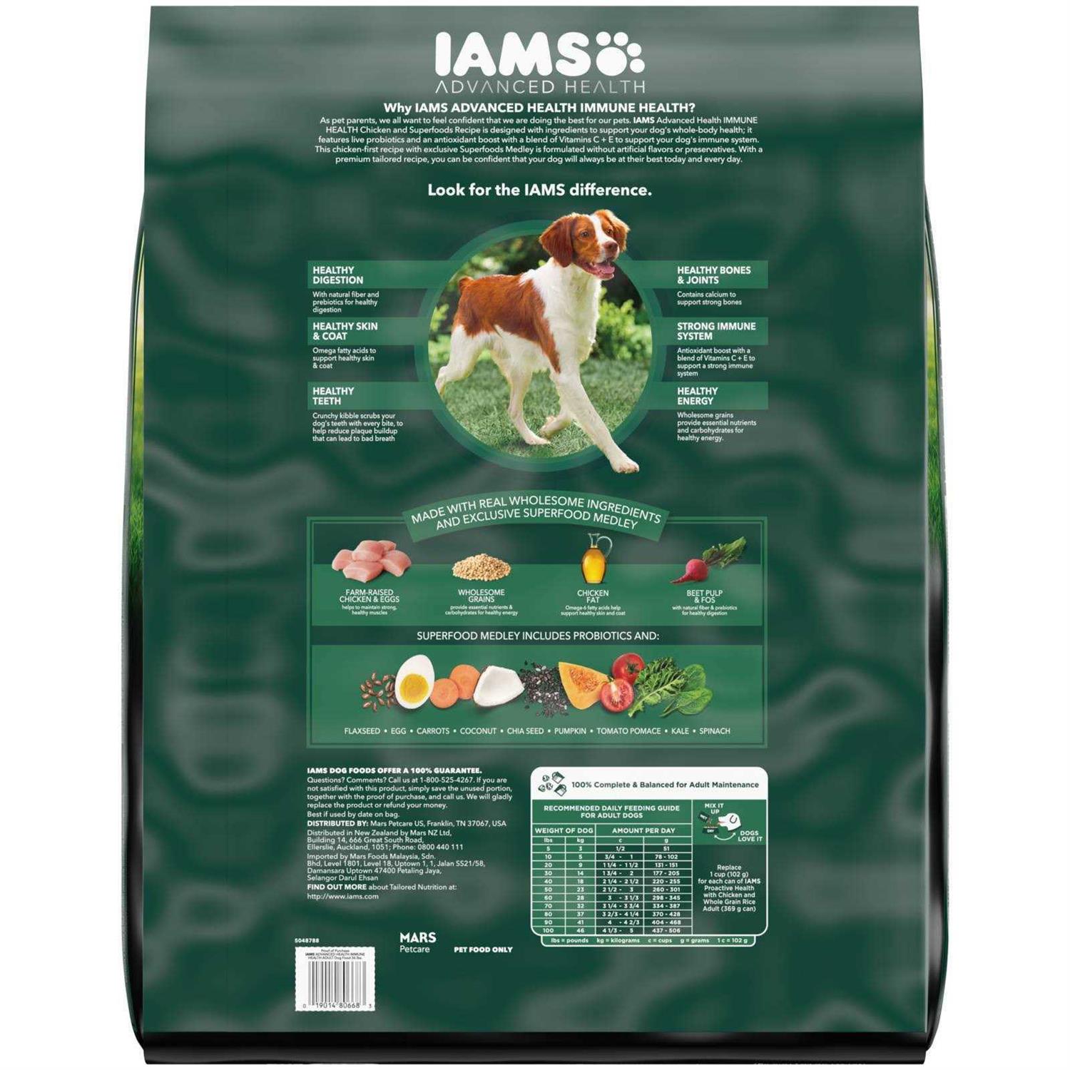 - Contains one (1) 36 lb. bag of IAMS Advanced Health IMMUNE HEALTH Chicken & Superfoods Recipe Adult Dry Dog Food