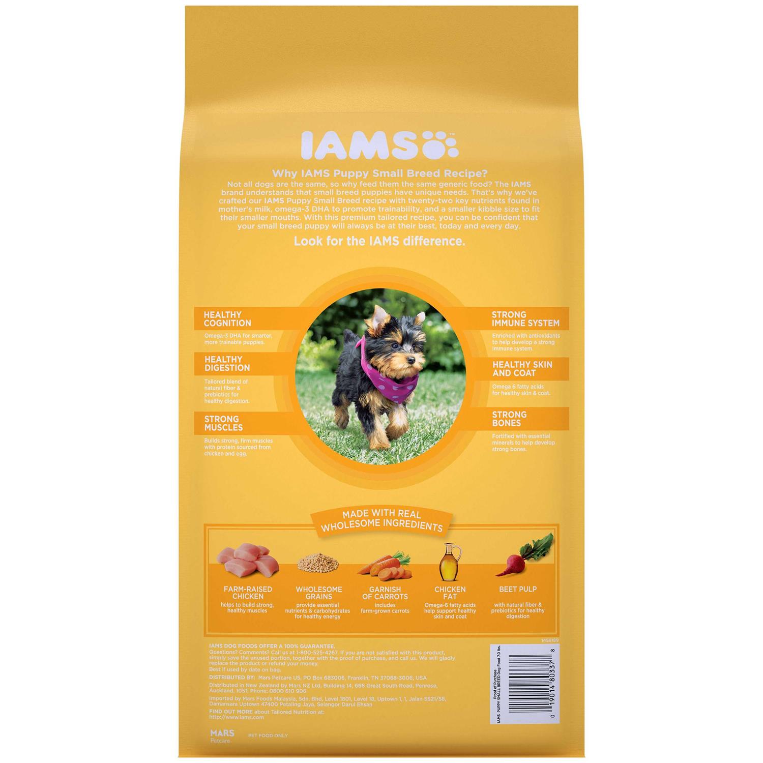 Your small breed puppy is one-of-a-kind thats why IAMS makes puppy dog food thats just as unique as they are. IAMS Puppy Small Breed Dry Dog Food with Real Chicken was created to meet their specific wellness and nutritional needs as they grow up to be healthy adults. With real, farm-raised chicken as the first ingredient, this dry puppy food is made with 22 key nutrients like those found in mothers milk, including omega-3 DHA to promote healthy cognition. Plus, the tasty dog kibble promotes strong muscles with quality protein. When you feed your puppy veterinarian-recommended IAMS dry food, you can feel good knowing theyre getting the nutrition they need to bring out their unique best.