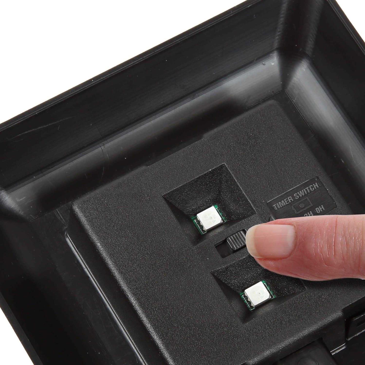 • LED light uses 2 AA batteries (sold separately), built-in timer allows you to select how long light stays on, 2 hours, 4 hours, or continuous ON