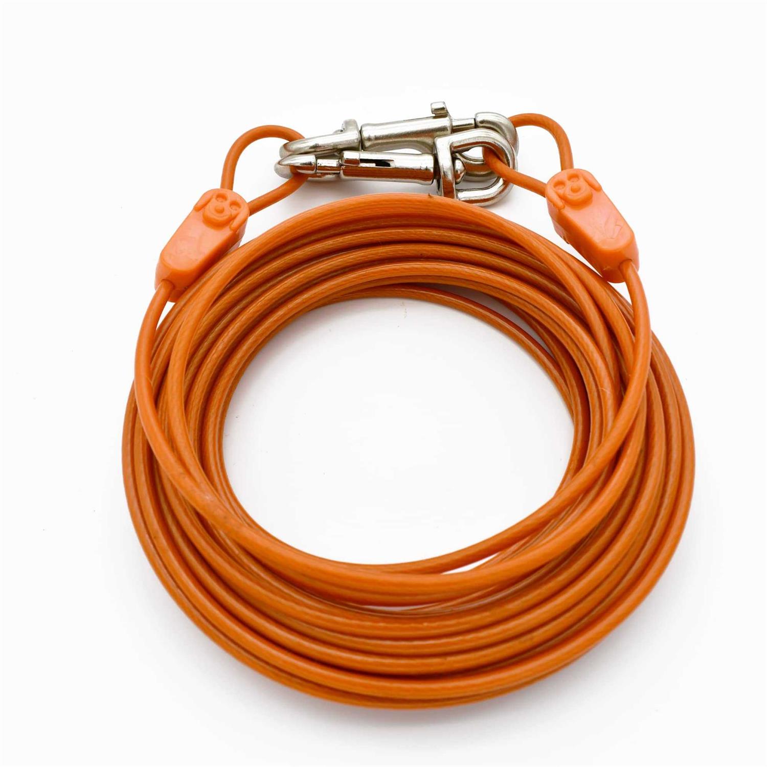 Our tie out cables were designed with you and your pet in mind. The bright orange color makes the cable visible in your yard to prevent tripping or running over with the lawn mower. The cables are made of galvanized airline cable for strength, and coated in crack resistant PVC to protect against rust. The cut 3-D dog crimp covers protect the ends of the cable to resist wear due to rust and provides an extra safety measure for the dog and dog owner. IntelliLeash Products Tie Out Cables come in a variety of sizes to suit any dog owner’s needs. Simply choose the strength of cable based on the weight recommendation and choose the length based on the area of space your dog has available to roam. Weight recommendations should not be exceeded to ensure the safety of your pet. Never leave your pet unsupervised when attached to the cable, never leave dog outside in inclement weather such as extreme heat or cold, and always leave fresh water within reach. Use with our line of smart tie out products designed to keep your pet safe and secure. Consider the Intelli-Stayk and Intelli-Shield to complete your ultimate containment system.