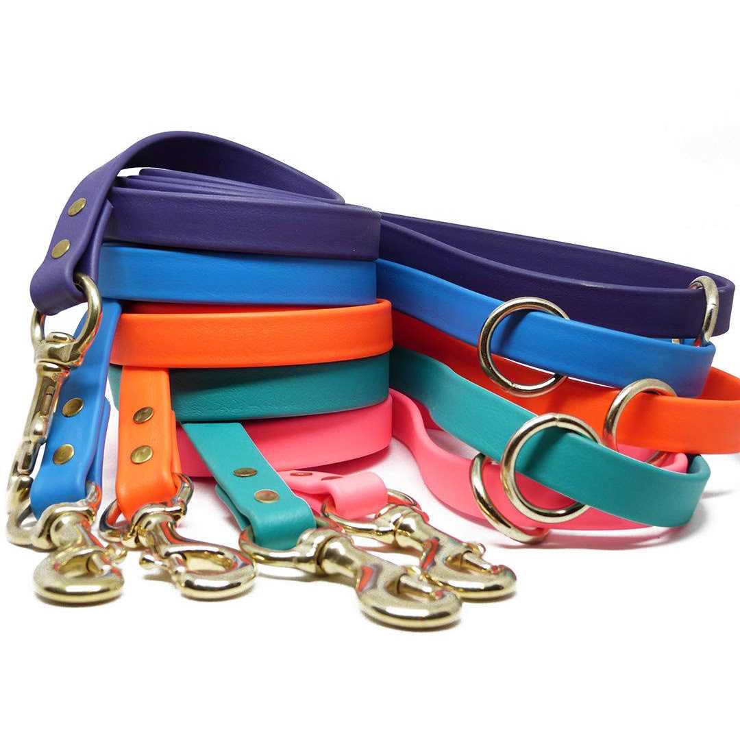 INTRODUCTORY PRICE! 4 ft Black Dog Leash (4′ x 1/2″) – Great for Small to Medium Dogs. The Perfect Leash for Dog and Puppy Training. This is a leash I use in my training practice. It is comfortable, firm and you can feel comfortable working with your dog knowing you are the Leader. I have been using Leather Leashes for over 25 years. I find myself using our “Gummy Dog Leash” more and more. In fact, this is the four foot version of the leash I give my training clients. Not only is this dog leash great for training, it is my leash of choice when walking, hiking and jogging with all dogs no matter if they are mild to heavy pullers. Four foot long by either 1/2 ” or 3/4″ wide. The leash is soft, comfortable and made from a USA man made material that is easily cleaned with soap and water. It should last for years as long as your dog doesn’t chew it up! Best of all it is Made in the USA! Feel confident that you are purchasing the best quality leash for your dog or puppy. These leashes are handcrafted. Made by the Amish … craftsmen that have spent hundreds of years making things the right way. The leashes are constructed with Biothane material, the heir apparent to leather, and use brass fittings including an O-ring in the handle. JimHodgesDogTraining introduces our new Biothane “Gummy Dog Leash”. This is the “Go To Leash” for training, walking hiking, jogging or whatever you want to do with your dog or puppy! This is one of the two leashes I now use in my daily dog training practice. It is strong and comfortable, giving you confidence in your actions. It is more weatherproof than leather leashes and cleans easily. In fact, there is nothing you can’t do with your dog when using this leash. The primary material in our leash is Biothane. Biothane is the material of choice to replace leather in dog training leads and horse training tack. Our “Gummy Leash” comes in the above colors with more on the way. The leash makes a statement or can fit into the crowd depending on the color you choose. It will definitely get others attention in your daily K9 adventures. Our leash is made of quality materials and is quality built. It is made in the USA by the Amish Community. The same people that have been building things with their hands for hundreds of years. JimHodgesDogTraining is a family owned business. Jim Hodges is a professional dog trainer that began offering high quality products to satisfy his dog training clients. He stands behind his products or he wouldn’t put his name on the label. If you ever have a problem or concern with one of our products, call or email. Dogs are our life! Try our new “Gummy Dog Leash” today.