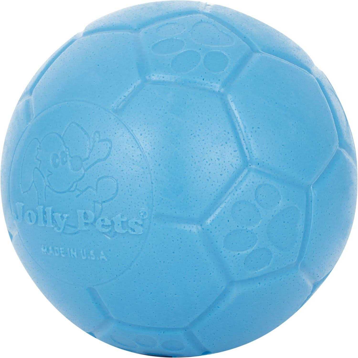 Jolly Pets Soccer Ball Assorted colors Small 6″ Designed to be pushed, kicked and nosed around by both you and your pup Ideal for water-based fun because it floats Suitable for the most energetic of dogs, including canine athletes Scented – Green smells like Green Apple & Orange smells like vanilla (Ocean Blue is not scented) Encourages healthy exercise and play Even if your dog puts a hole in it, this toy will still keep its shape Made in the USA Get ready to score big with the Jolly Soccer Ball Dog Toy! This isn’t your ordinary toy—it’s a game-changer that will have your pup jumping for joy. The Jolly Soccer Ball can take a beating and keep bouncing back for more. Made from our signature JollyFlex material, your pup can give it their all without popping their playmate. It’s time to unleash their inner soccer star. Looking for some splashin’ good fun? Look no further! This ball is designed to float, making it the ultimate water toy for your furry water lover. Whether it’s a dip in the pool or a trip to the beach, the Jolly Soccer Ball is ready to make a splash and keep the good times rolling.