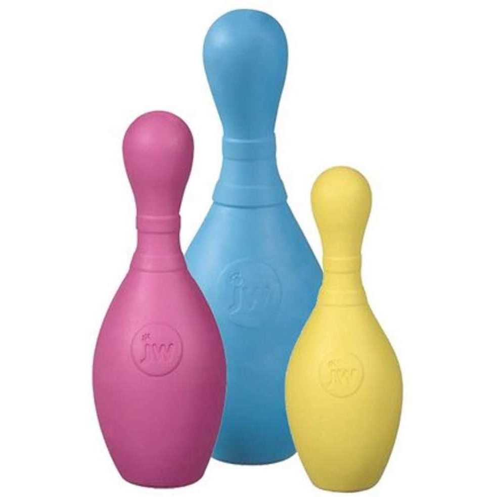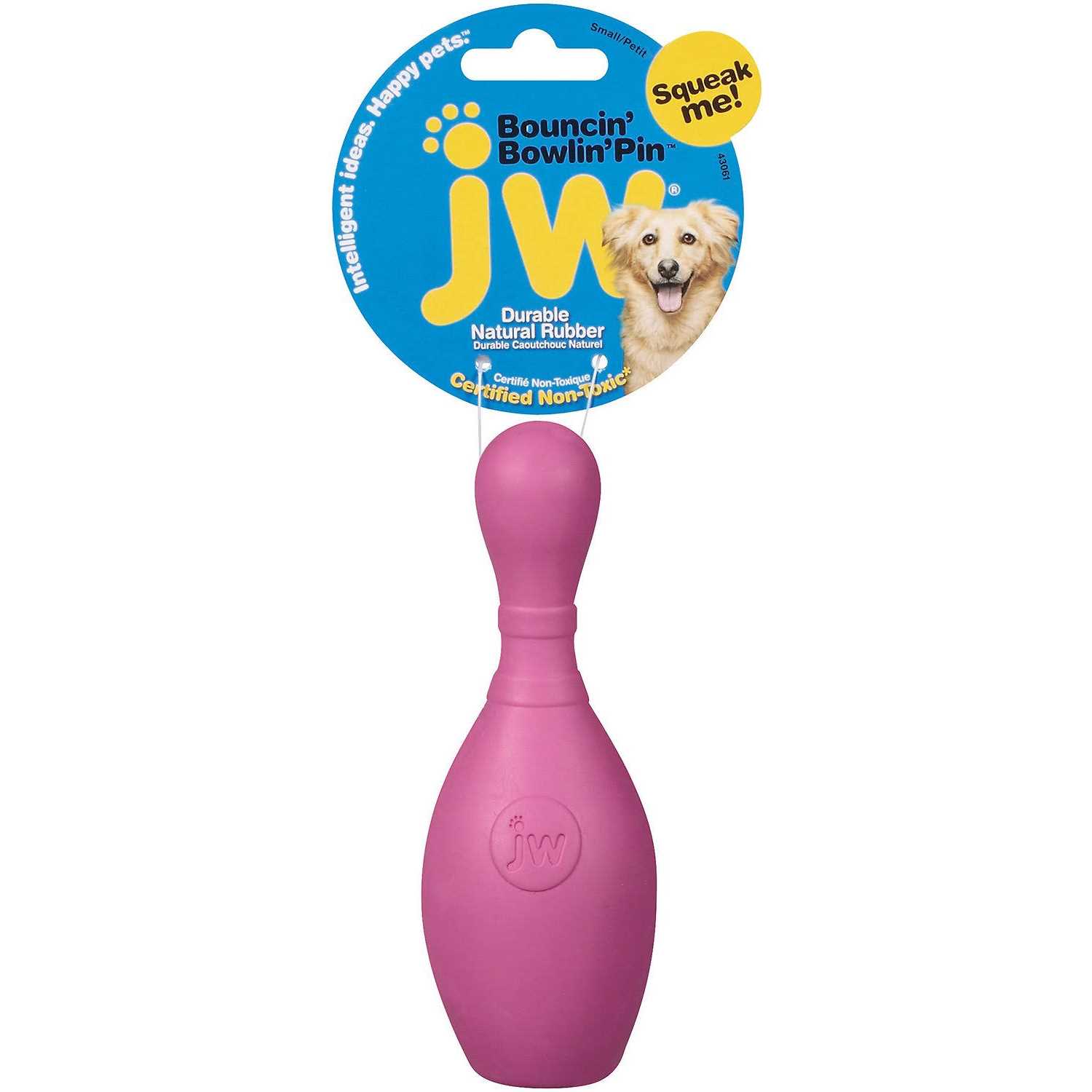 The Bouncin Bowlin Pin Small is a tough natural rubber dog toy with a classic shape that naturally lends itself to a dog’s mouth. Dogs will be bowled over by this toys ability to stand up to rugged playtime, perfect for squeaking, flinging, rolling, and just plain ole carrying around. The iSqueak Bouncin Bowlin Pin squeaker holds up to tough chewers and comes out squeakin every time. Suitable for puppies and small breed dogs.
