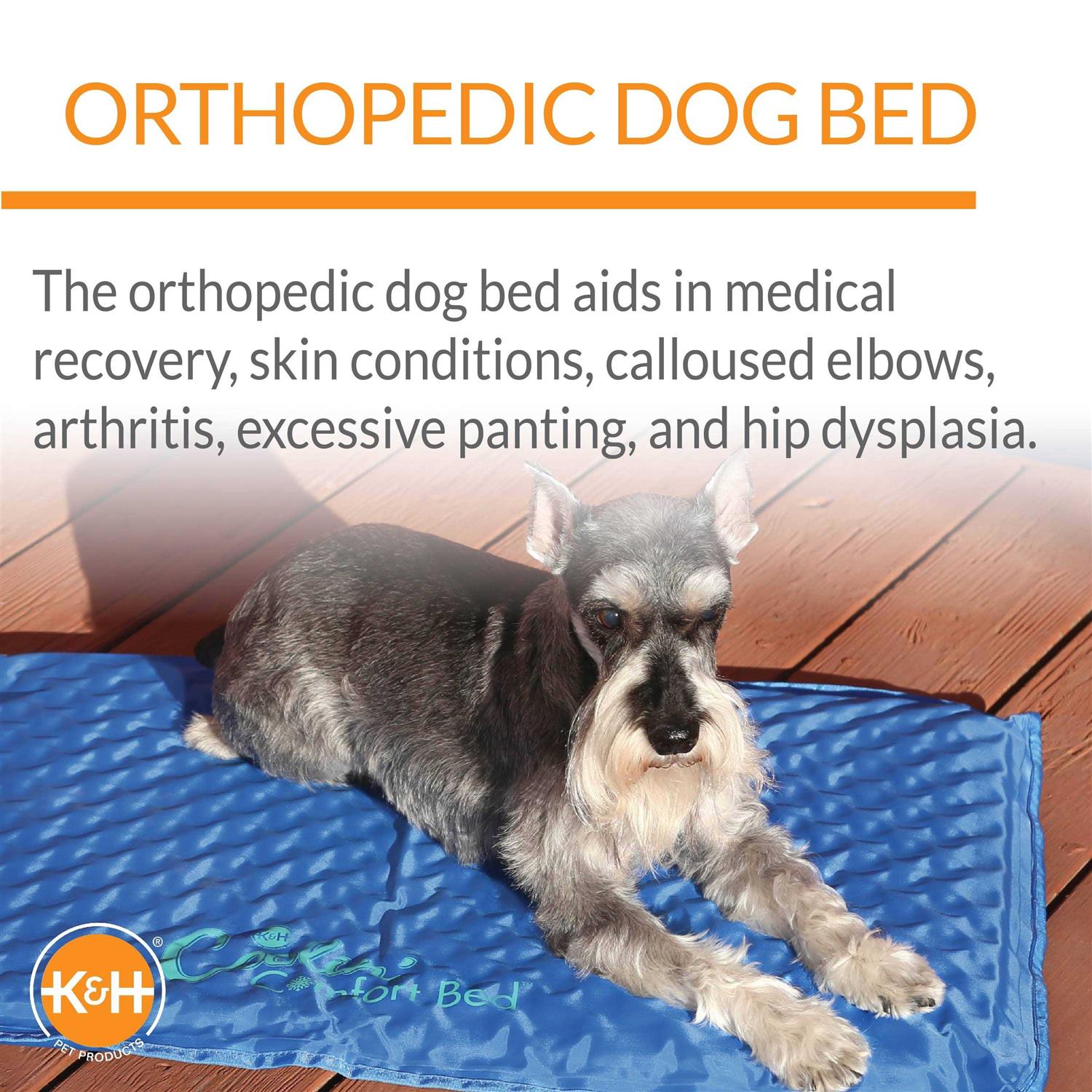 SKU 50150269- K&H’s most comfortable cooling bed to date! No electricity is required to operate the orthopedic Coolin’ Comfort Bed. Attractively designed to provide a cool spot for dogs. Simply add water just once through the easy fill cap and adjust comfort with the easy air valve. The orthopedic bed aids in medical recovery, skin conditions, calloused elbows, arthritis, excessive panting, and hip dysplasia. The K&H Coolin’ Comfort Bed is the affordable choice for any dog owner looking to offer their pet a comfy, dry, cool place to relax.