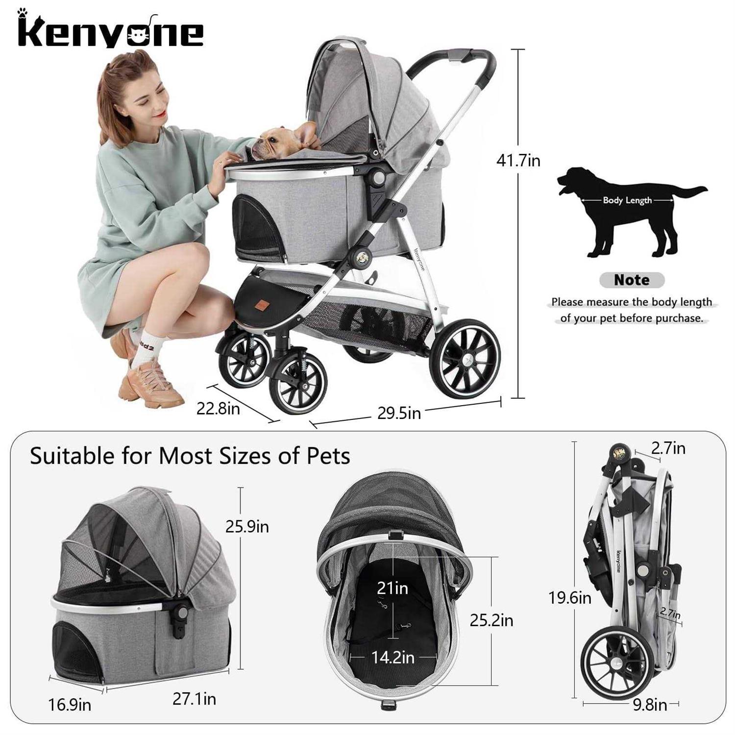 Kenyone Pet Stroller 3 in 1 Dog Stroller for Medium Small Size Dogs