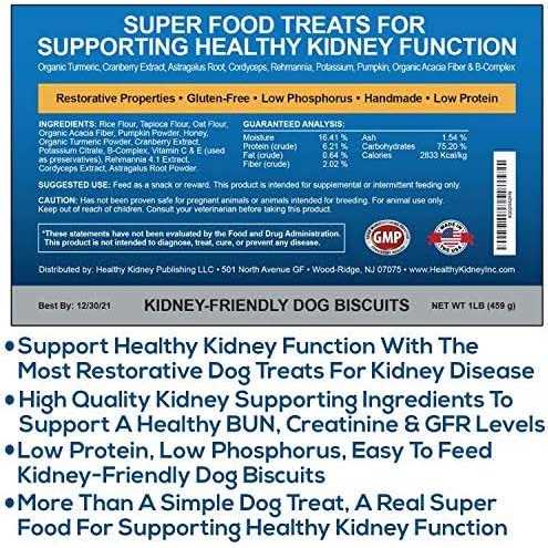 Kidney Restore Dog Treats 16oz for Petite Dogs. Low Protein Dog Treats for Kidney Support for Small Dogs. Renal Treats for Any Kidney Dog Diet.