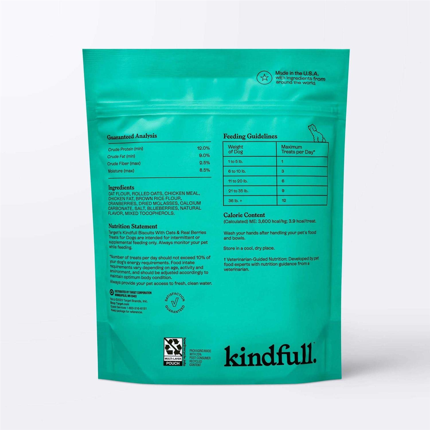 The Kindfull Real Berry Biscuit Dog Treats are highly nutritious treats made with real berries and oats that your pet will love. Whether for training, rewards, or to simply brighten your pet’s day, these dog treats will leave them feeling happy and cheerful. Perfect for intermittent snacking, these tasty treats are intended for supplemental feeding only. It’s rmended to always monitor your pet while feeding. That’s why every one of our products is thoughtfully crafted to support pet wellness, well-being and happiness. Creating a world of good for your pet.