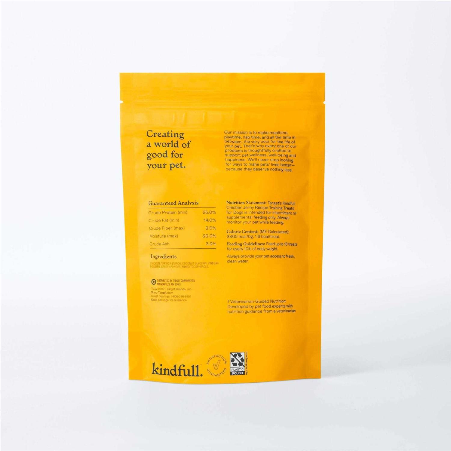Kindfull Chicken Jerky Recipe Training Treats for Dogs are made with chickens which have not been given antibiotics and are delicious, natural treats containing only 6 ingredients. These treats are intended for intermittent or supplemental feeding only. Always monitor your pet while feeding. That’s why every one of our products is thoughtfully crafted to support pet wellness, well-being and happiness. Creating a world of good for your pet.