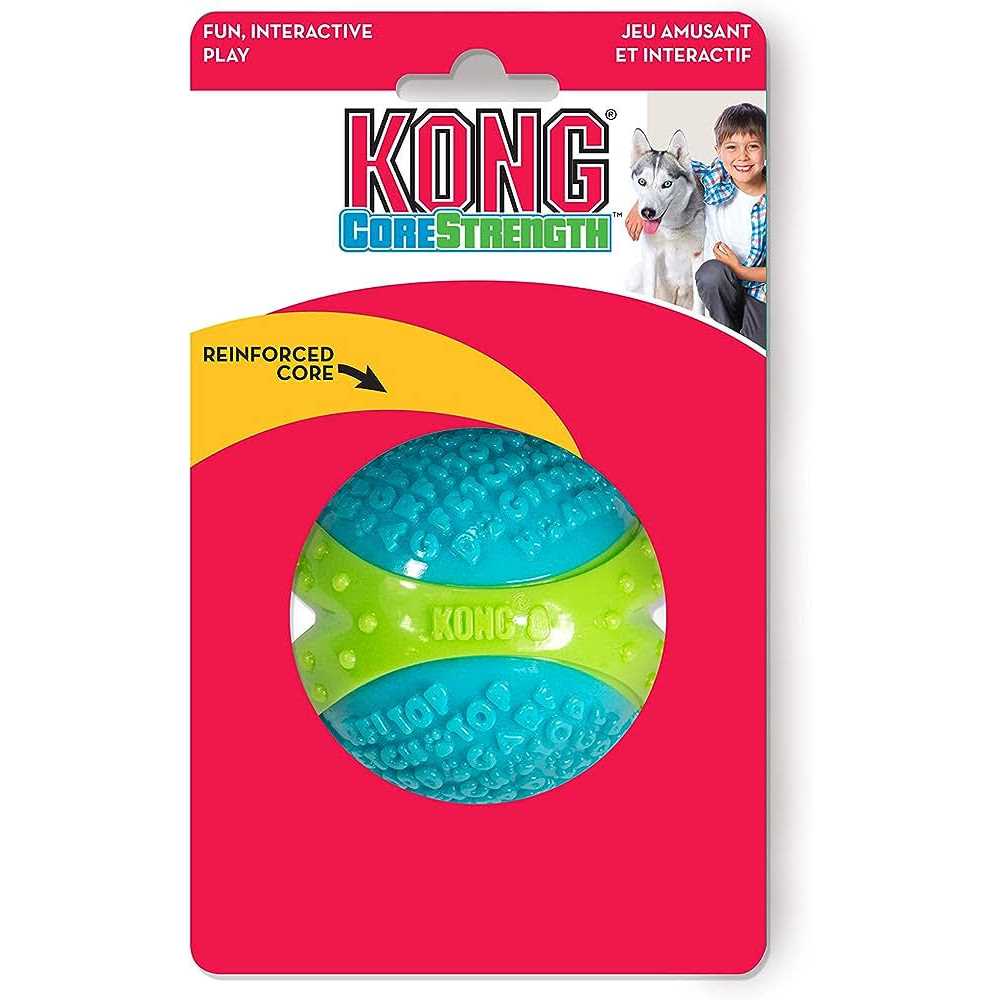 KONG Core Strength is build to last and is sure to bring excitement while providing extended play sessions along the way. The durable KONG-crafted multi-layered core stands-up to long-lasting chew sessions while meeting a dog’s natural chewing instincts. The reinforced layers within the core add extra toughness making it great for power chewers. The exterior textured words add to the fun and have the added benefit of cleaning teeth and gums. Ideal for independent play and interactive toss and retrieve, KONG Core Strength is sure to delight the most playful of dogs Select the correct size, remove packaging before use & keep for safety guidance; Supervise play time and discontinue use if damaged. If ingested seek vet advice. This pet toy is not intended for children.