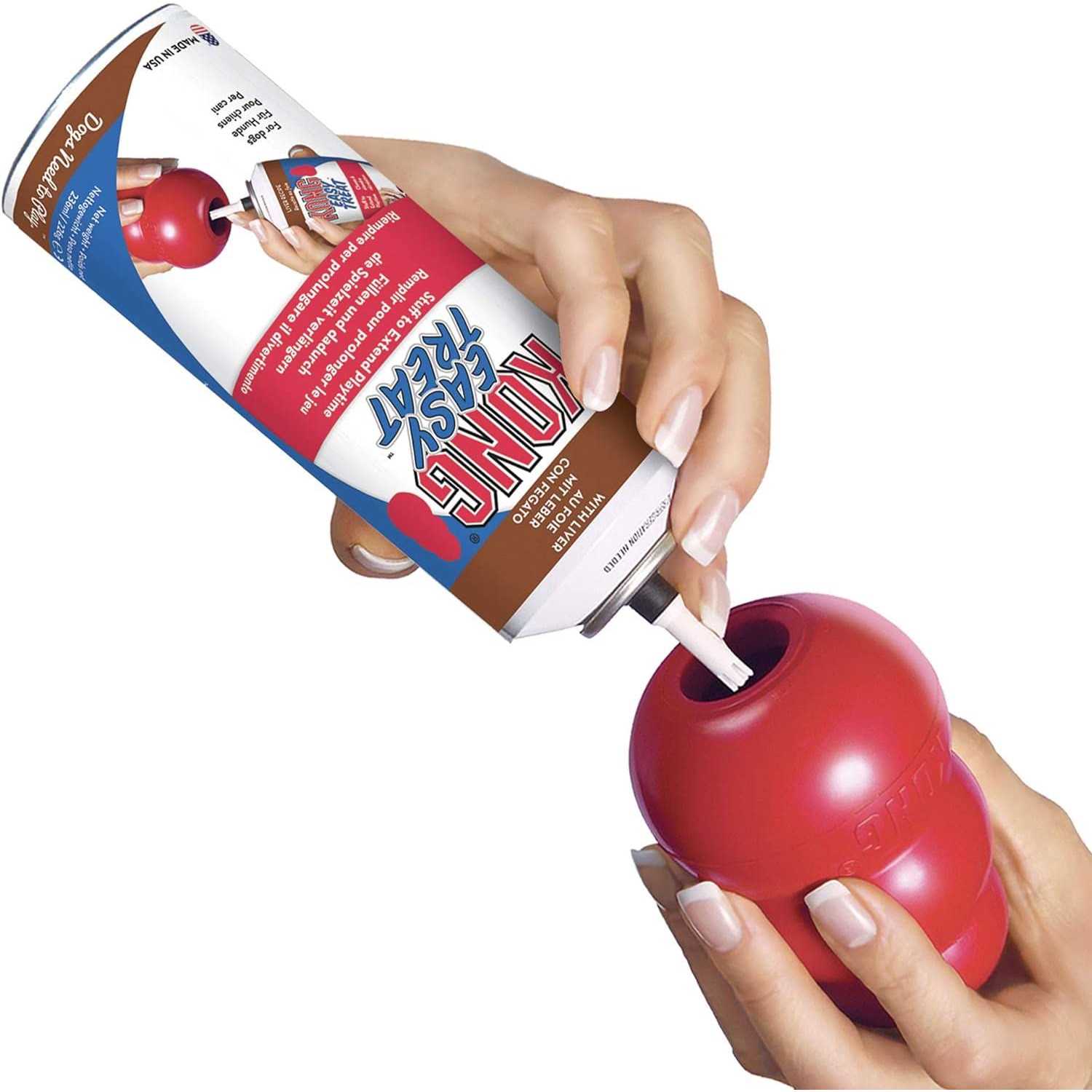 Kong Stuff’n Liver flavor is specially formulated for dogs. Simply insert nozzle tip into opening at base of toy and press to fill toy full of the tasty, flavored paste. Vitamin-enriched formula helps improve skin and coat while enticing dogs to chew the rubber toy for better dental hygiene. Promotes healthy skin and coat. Delicious liver flavor your dog loves. Easily applicable to Kong toy.