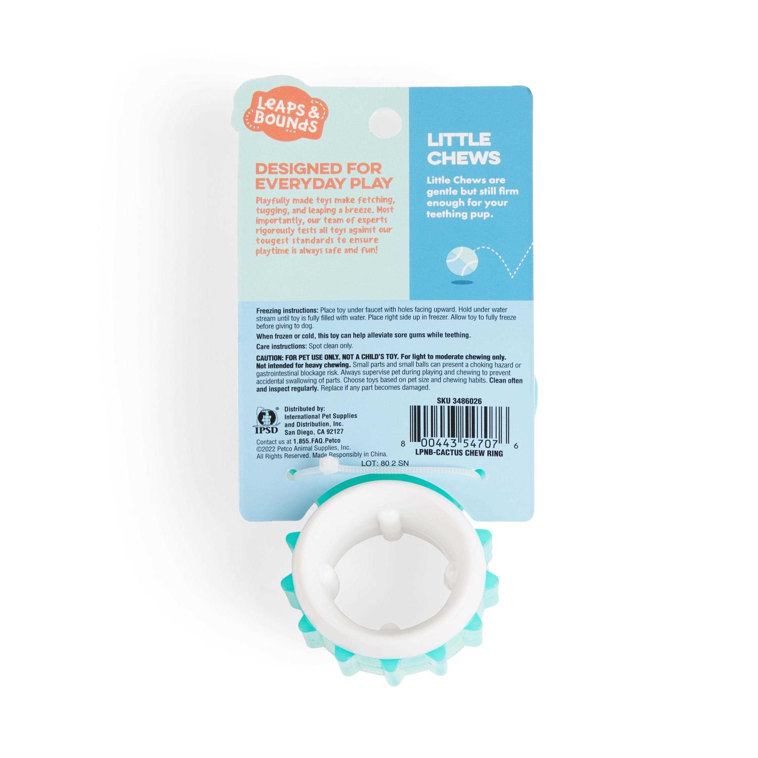 Cactus Chew Ring from Leaps and Bounds Cute cactus design is on trend Freeze to help alleviate sore gums from teething TPR construction is extra tough This Leaps and Bounds Cactus Chew Ring makes a great teething toy for your pup! Simply freeze it and give it to your babe to relieve those terrible teething blues.