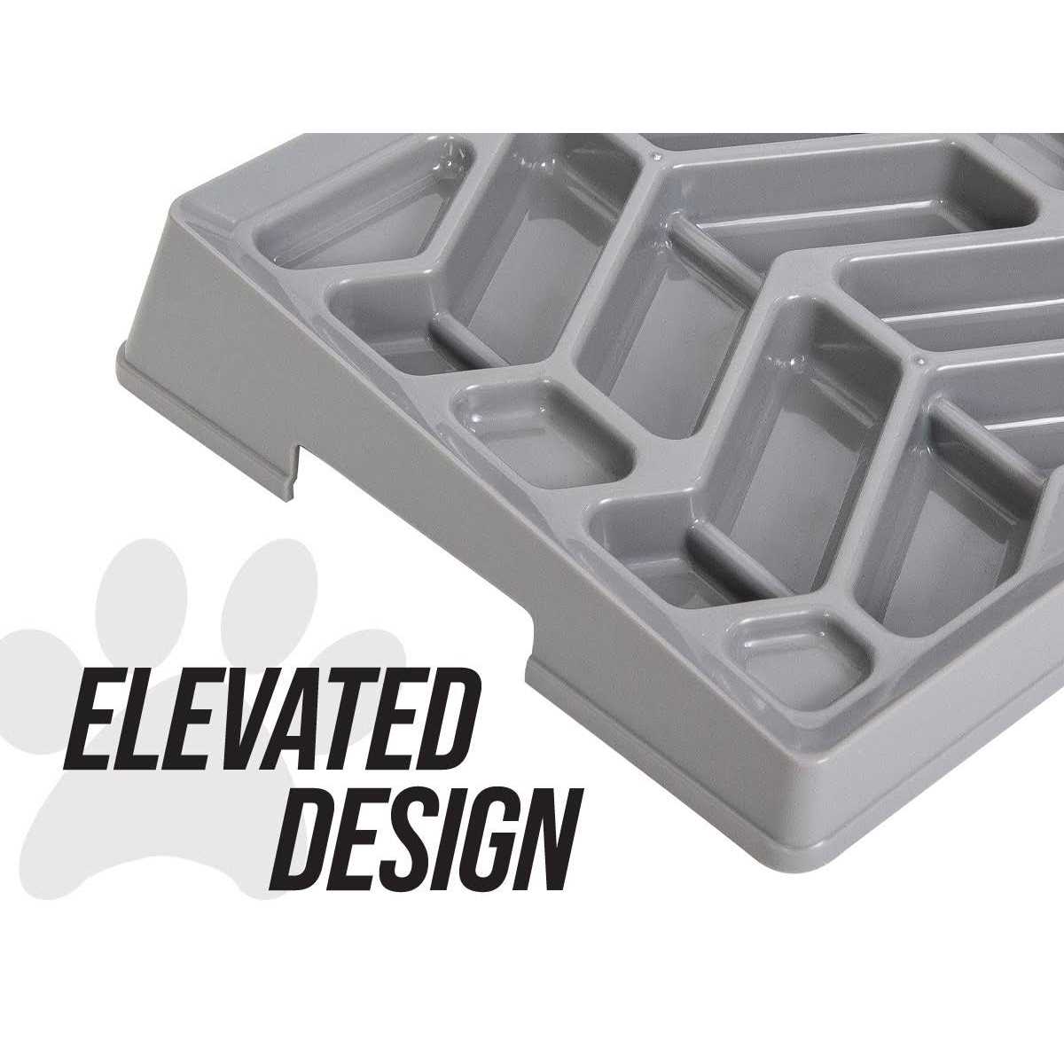With the Leashboss Flat Face Slow Feeder Dog Bowl, mealtimes are longer and a ton more fun! This feeder is designed for flat-faced dogs like French bulldogs and pugs, as well as for cats. Wider channels and shallow dips let your furbaby enjoy the benefits of a slow feed bowl without all the frustration. There are no sharp corners or narrow spaces to scrape snouts, and a gentle incline helps your furbaby reach his food more easily. At the same time, the mat promotes slower eating for improved digestion and happier tummies. It may help prevent gulping, bloat, obesity, choking and vomiting, while the interactive maze design helps keep your furbaby’s interest. Try adding peanut butter for a special treat while you’re out, or use the bowl for your best friend’s dry food, wet food or raw food. The feeder’s non-slip grip helps keep it from sliding around, and it’s dishwasher-safe for su-paw easy cleaning.