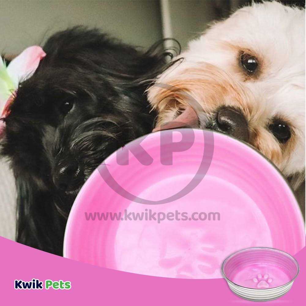 Le Bowls Rose available in 4 Sizes: XSmall (300ml), Small (500ml), Medium (750ml) and Large (1250ml). Le Bol are award-winning pet bowls, these bowls are not only gorgeous but also extremely durable. Created in the style of famous French cookware, these stainless-steel bowls have a brightly coloured ceramic-like interior. The glazed overstain effect highlights the ribbed walls and embossed paw in the bottom. The integrated rubber base makes them skid and noise-free and of course, they are top-rack dishwasher safe. Glazed overstain effect highlights the ribbed walls Naturally bacteria-resistant Low noise Removable rubber base prevents skids/spills Dishwasher safe, please remove rubber ring before washing from base.