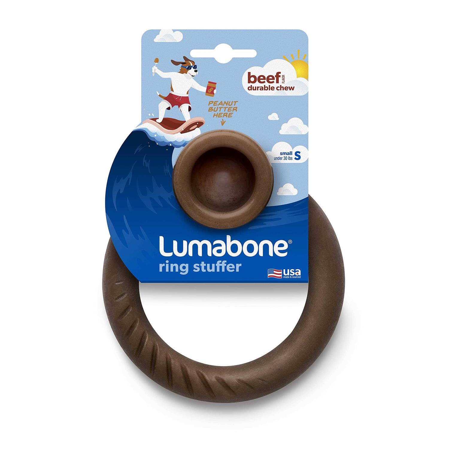 Lumabone Ring Stuffer Durable Chew Toy for Aggressive Chewers, Real Beef, Made in USA, Small