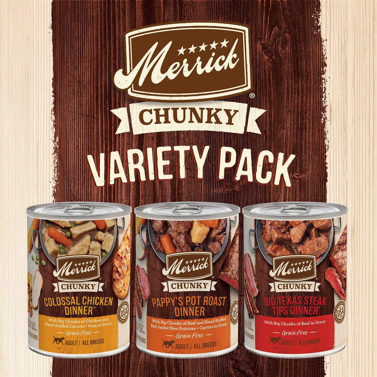 - Merrick Chunky Recipes Grain Free Wet Dog Food Variety Pack, Canned Dog Food