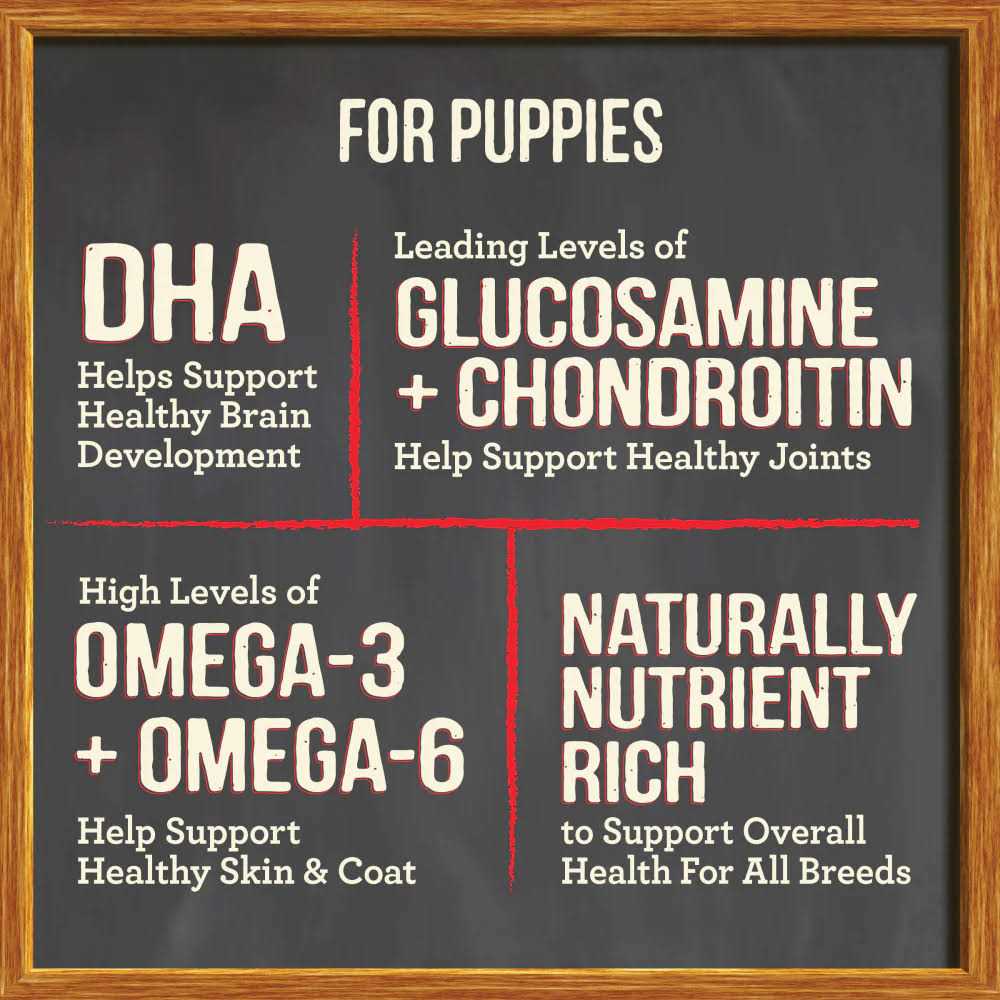 - High protein dog food with omega fatty acids to support healthy skin and shiny coat, plus glucosamine and chondroitin for dogs to help maintain