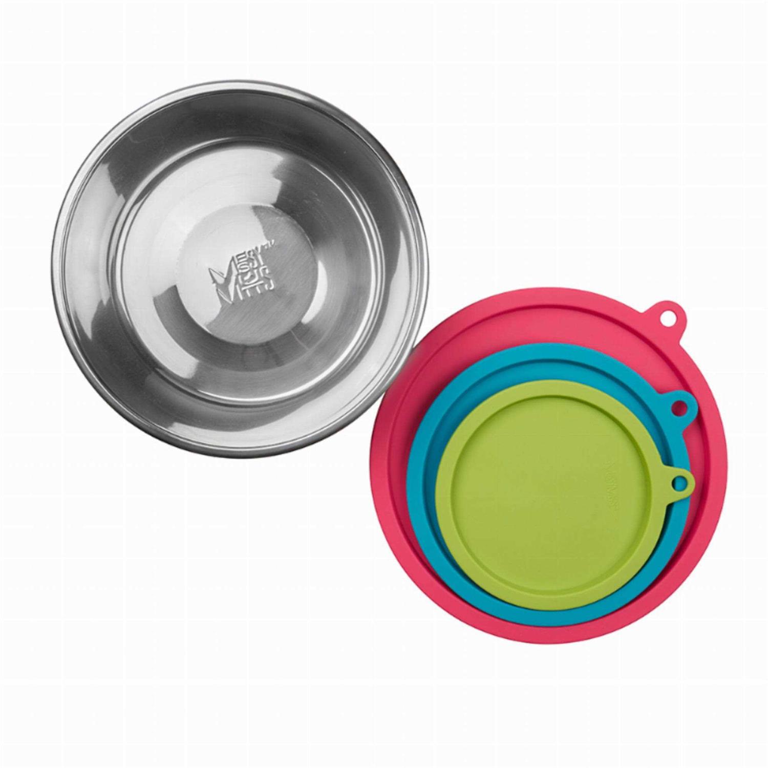 Make your life easier by prepping raw and dehydrated meals ahead of time. Bowl and lid combos become stackable for easy storage and the airtight seal keeps the food fresh and ready to eat. Non-porous stainless steel to minimize bacteria. Designed to integrate with Messy Mutts silicone single and double feeders systems (and other universal bowl holds) to keep the bowls in place and contain the mess. Prepare raw meals ahead of time, thaw and keep fresh in the refrigerator. Stackable and spill resistant (even with liquids) which also makes them great for travel, dry or wet food if you furry friend does not finish their meal. Reduce the chance of cross contamination in your kitchen by prepping your meals in the same you’re your dog eats fromand then putting it in the dishwasher! Great for travelling. All components are made from FDA approved food grade materials. BPA and PVC Free. Dishwasher safe.