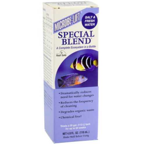 Breaks down organic waste so water is cleaner and clearer with reduced odors Improves growth and nutrient uptake in plants and corals. Safe for fresh and salt water tanks. Special Blend is all natural & contains live bacteria cultures for a balanced aquarium. Biologically reduces nitrates, breakes down excessive proteins & aids in the reduction of ammonia & nitrates. Special blend is a specially formulated consortium of bacteria designed to create a stable biological system in fresh and saltwater aquariums. STEP 1 It is important to make sure you condition your water before adding Special Blend, to make sure there is no chlorine or chloramine present. This can be accomplished by using a water conditioner like Microbe Lift Xtreme to remove chlorine, chloramine, ammonia, and todotoxify heavy metals in your water. STEP 2 Add Special Blend according to the recommended dosage on the box. If this is a new aquarium, add the Special Blend when you introduce fish. STEP 3 Add Microbe Lift Nite Out II in order to finish balancing your biological filter. Follow the recommended maintenance schedule for the Special Blend in order to keep your water quality at its best. When used together, Special Blend and Nite Out II can cycle an aquarium in as little as 24 hours.