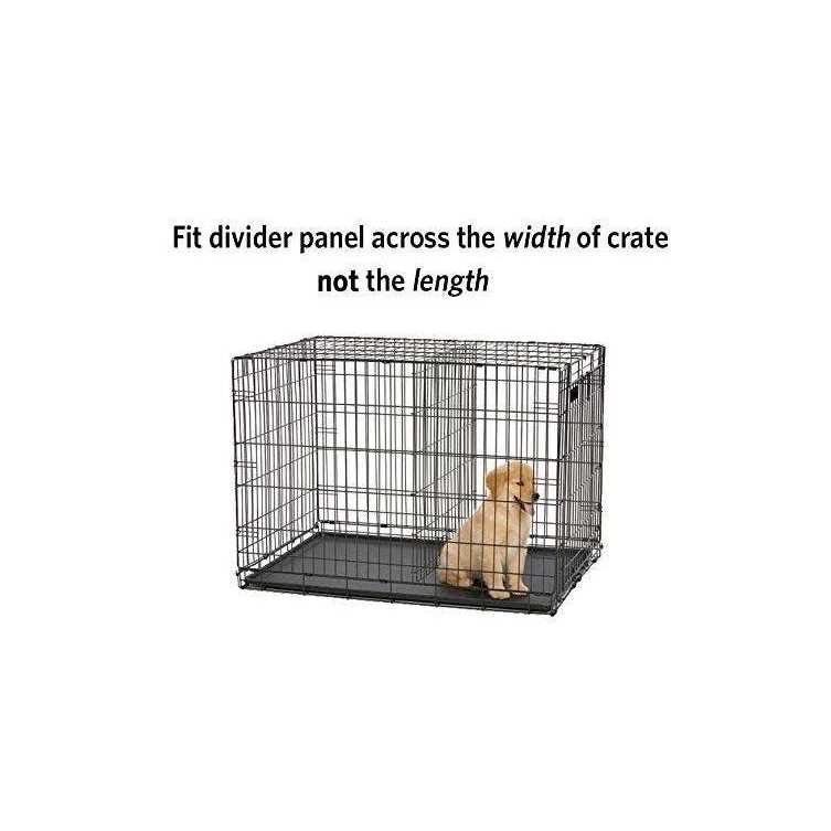 - The divider panel fits snuggly across the width of the dog crate (not the length of the dog crate