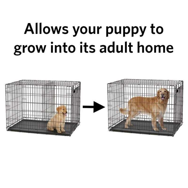- Divider panel allows you to adjust length of living area as your puppy grows into its adult size home