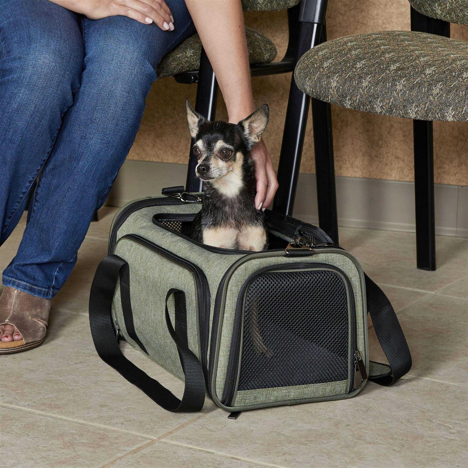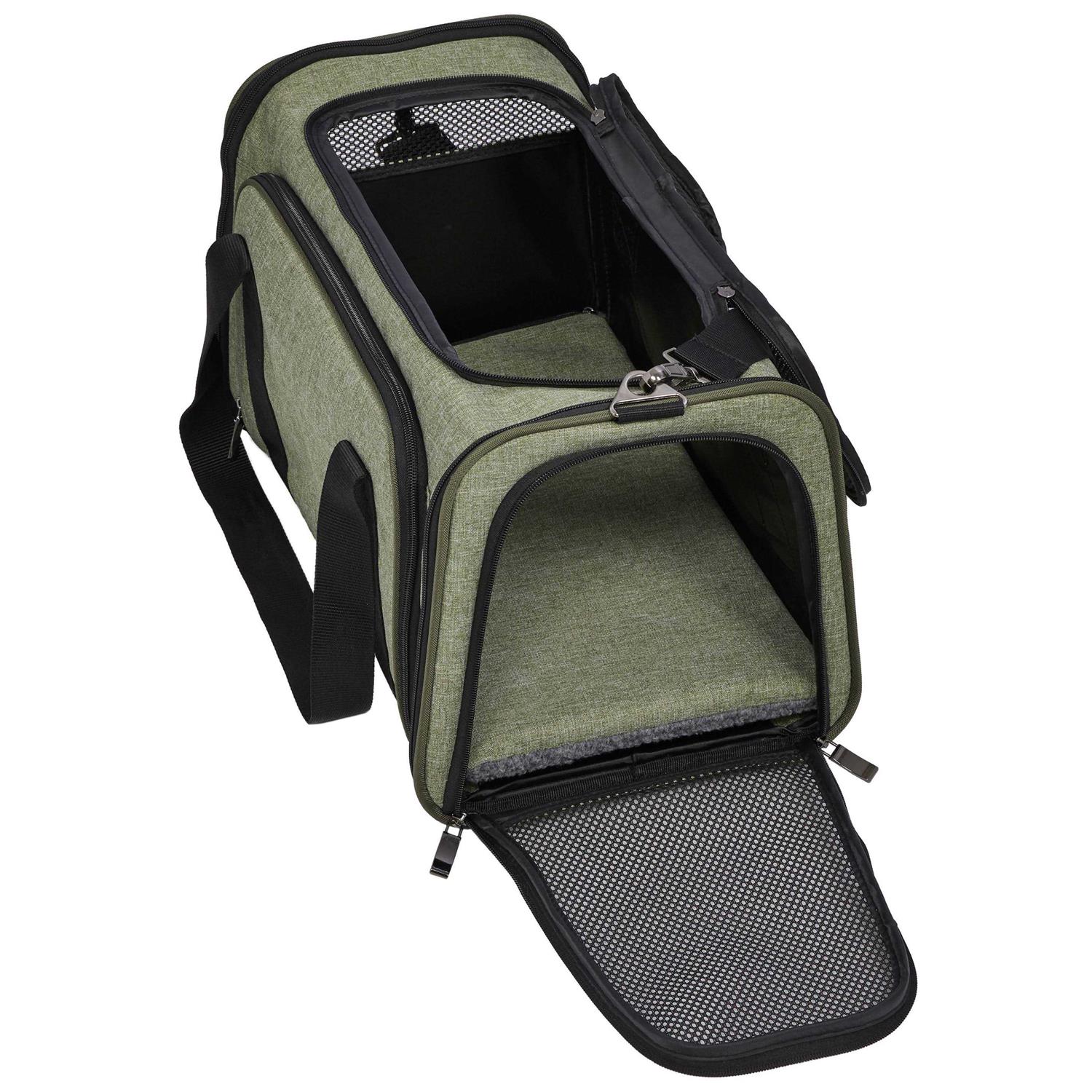 MidWest Duffy Dog & Cat Carrier, Green, Medium; The most important qualities in a pet carrier are durability and ease of portability. The MidWest Duffy Dog & Cat Carrier has all of those qualities. The mesh sides provide ventilation and keep your pet safe and secure, and an expandable side gives your pet more space to move around. No tools are required for setup, and the carrier folds flat for easy storage when not in use. The crate includes a carrying strap and an interior leash for ease and safety.