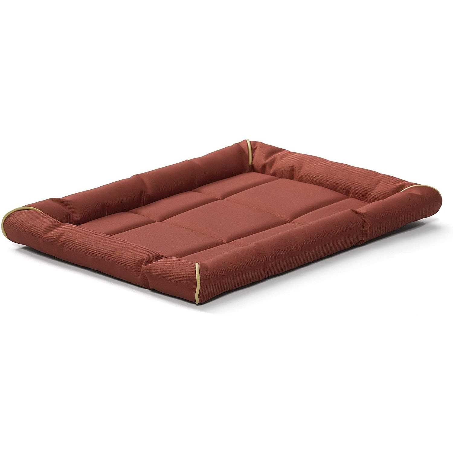 The quiet time maxx is made with a water resistant polyester that helps make care easy and keep bedding dry. The polyfiber-filled bolsters and cushioned base provides your pet with comfort for all seasons. They are sized to fit most crates, carriers and easily fit in vehicles. Available in five sizes, three colors and is machine washable. Color: brown.