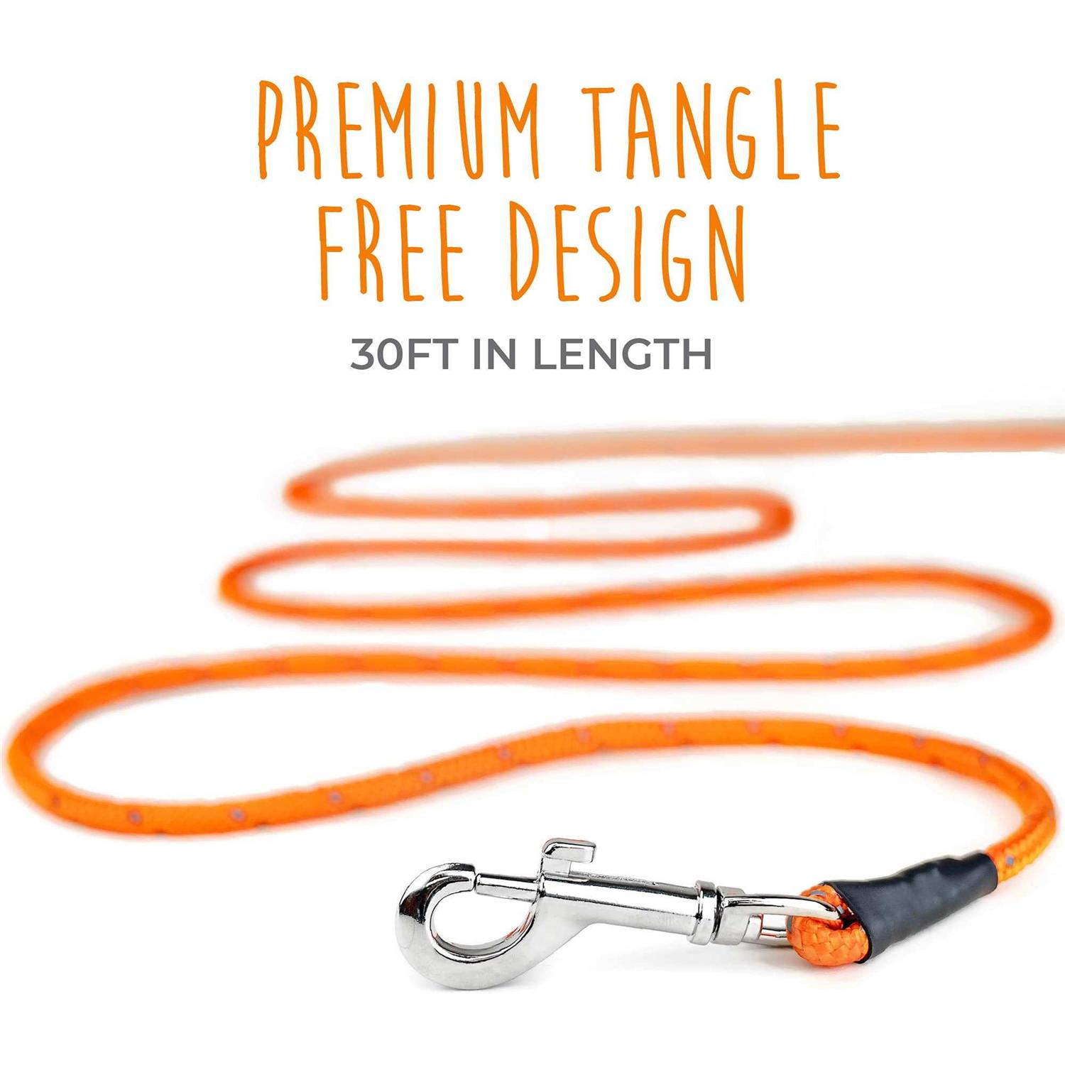 Mighty Paw Check Cord, Light Weight 30 Foot Dog Training Leash. Durable, Weather Resistant Climbers Rope with Reflective Stitching. Perfect for