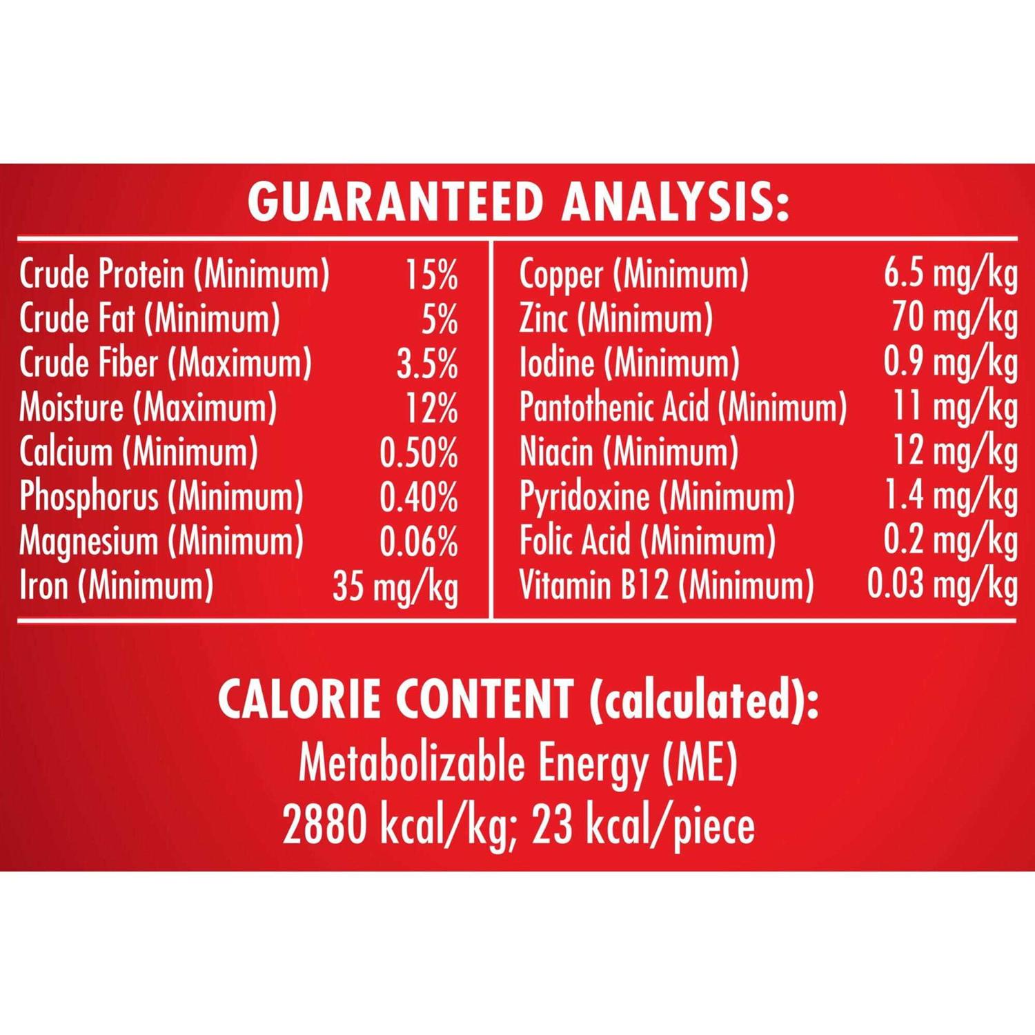 Keep your pup happy and healthy with these flavorful snacks. With 12 vitamins and minerals and flavors like bacon and turkey, your canine companion will want 1 after another. Contains 5 hearty meat flavors, including bacon, chicken, beef, sausage and turkey. Large box features over 370 biscuits. 12 vitamins and minerals provide health benefits.