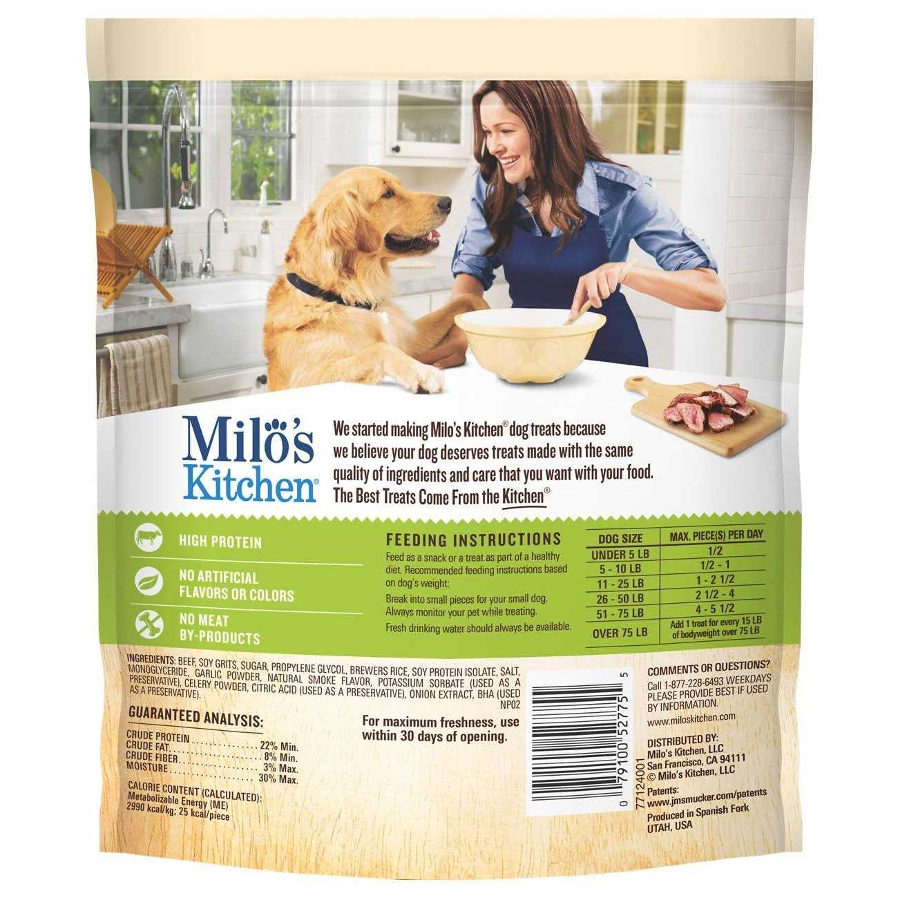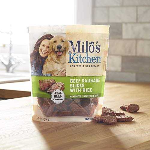 - Contains One 18-Ounce Bag Of Milo’S Kitchen Beef Sausage Slices With Rice Dog Treats