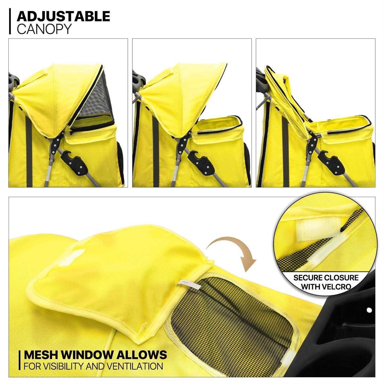 MoNiBloom Foldable Pet Stroller with Waterproof Cover, 3-Wheels Dog Strolling Cart for Small/Medium Dogs and Cats with Storage Basket and Cup Holder