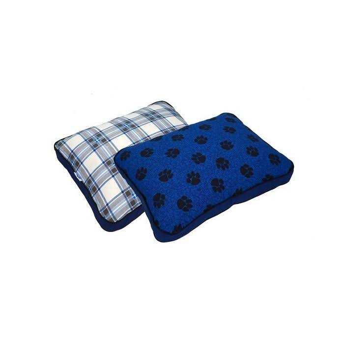Features reversible, cotton cover with stipple/paw prints on one side and plaid on the other. Removeable inner bed and zippered cover are safe for washer and dryer use. Lightweight design is ideal for easy handling to provide pet maximum comfort anywhere and anytime. Patented interlocking fill cradles pet’s body for optimal support of joints and muscles. Recommended to put in the dryer for 15 minutes prior to first use. Small measures 18″ x 24″ with 2″ gusset. Medium measures 24″ x 36″ with 3″ gusset.