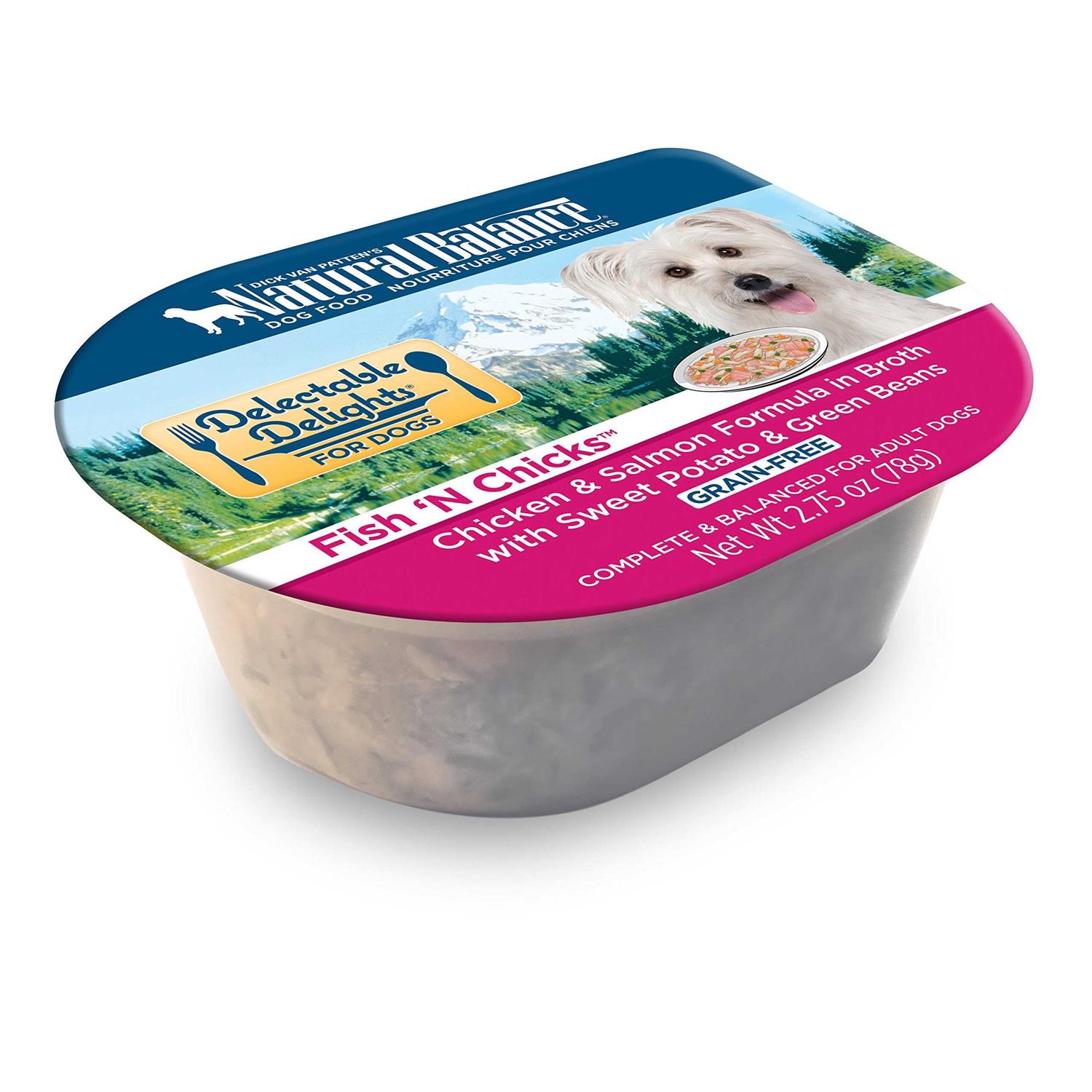 Natural Balance Delectable Delights Grain Free Fish ‘n Chicks Chicken & Salmon Formula in Broth with Sweet Potato & Green Beans, Wet Dog Food, 2.75-oz