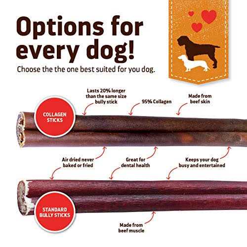 Natural Farm Collagen Dog Chews. 6 inch, 10 Pack. Odor-Free Long Lasting Bully Sticks & Rawhide Alternative Dog Treats, 95% Collagen Low Fat, High