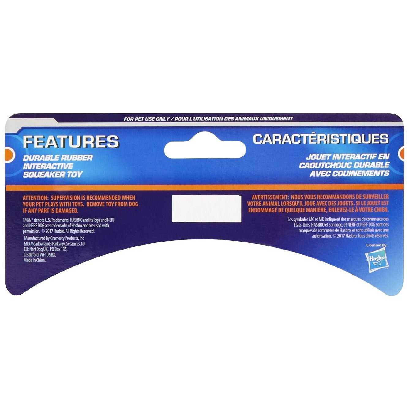 NERF Dog TPR Squeak Crunchable Football is designed to be tough, but comfortable to chew. The durable rubber material is gentle on your dog’s teeth and jaws and is made to last. Can be used as a throw and retrieve toy with the textured pattern making it easy to grip. Great for toss and fetch. Squeaks and crunches, adding to the excitement for your dog.