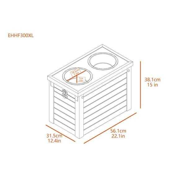 Ergonomically designed for a correct feeding position, not only does the Piedmont Double Diner hold two large bowls, it also includes a sealed storage bag for up to 25 lbs. of food storage within the unit. Made of ecoFLEX, a non-toxic, recycled wood and plastic polymer, it is designed to wipe clean with just a damp cloth. Two 32 oz. stainless steel bowls are included, and no tools are required for assembly.