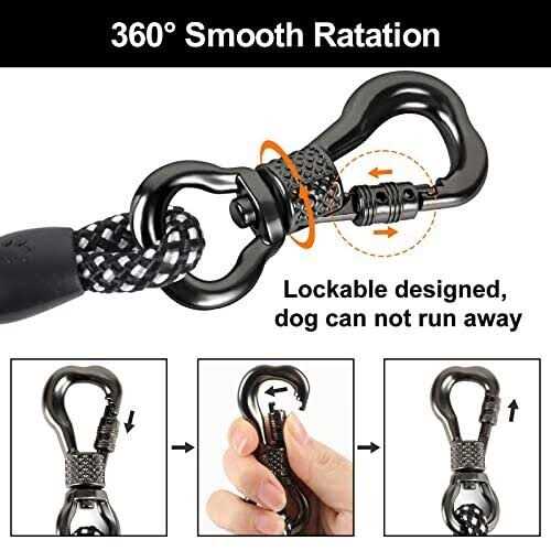 The NTR leash for medium-sized dogs is designed with 360 rotation and locking buckle, using advanced zinc alloy and allowing 360 rotation. At any time, your dog will be able to move around you happily and safely without being entangled. The handle of the long leash is made of soft and sturdy EVA, which protects your hands from rope burns and allows you and your dog to walk easily and happily. Large and large dog leash suitable for outdoor sports such as hiking, camping, training, hunting, backyard, beach, mountaineering, walking, running, etc. Now you can take your pet on various adventures.