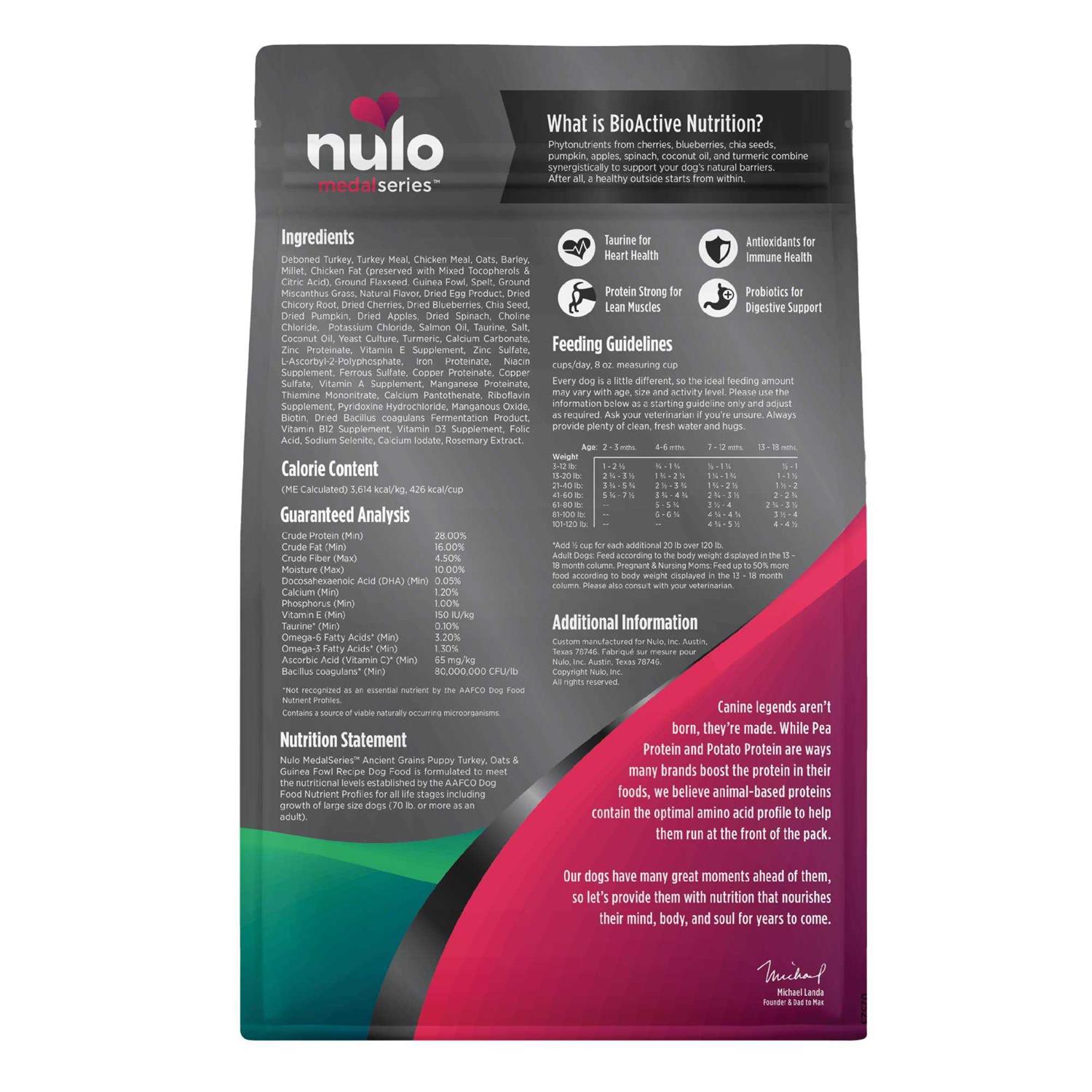 Nulo MedalSeries Ancient Grains Turkey, Oats & Guinea Fowl Dry Puppy Food, 4.5 lbs.