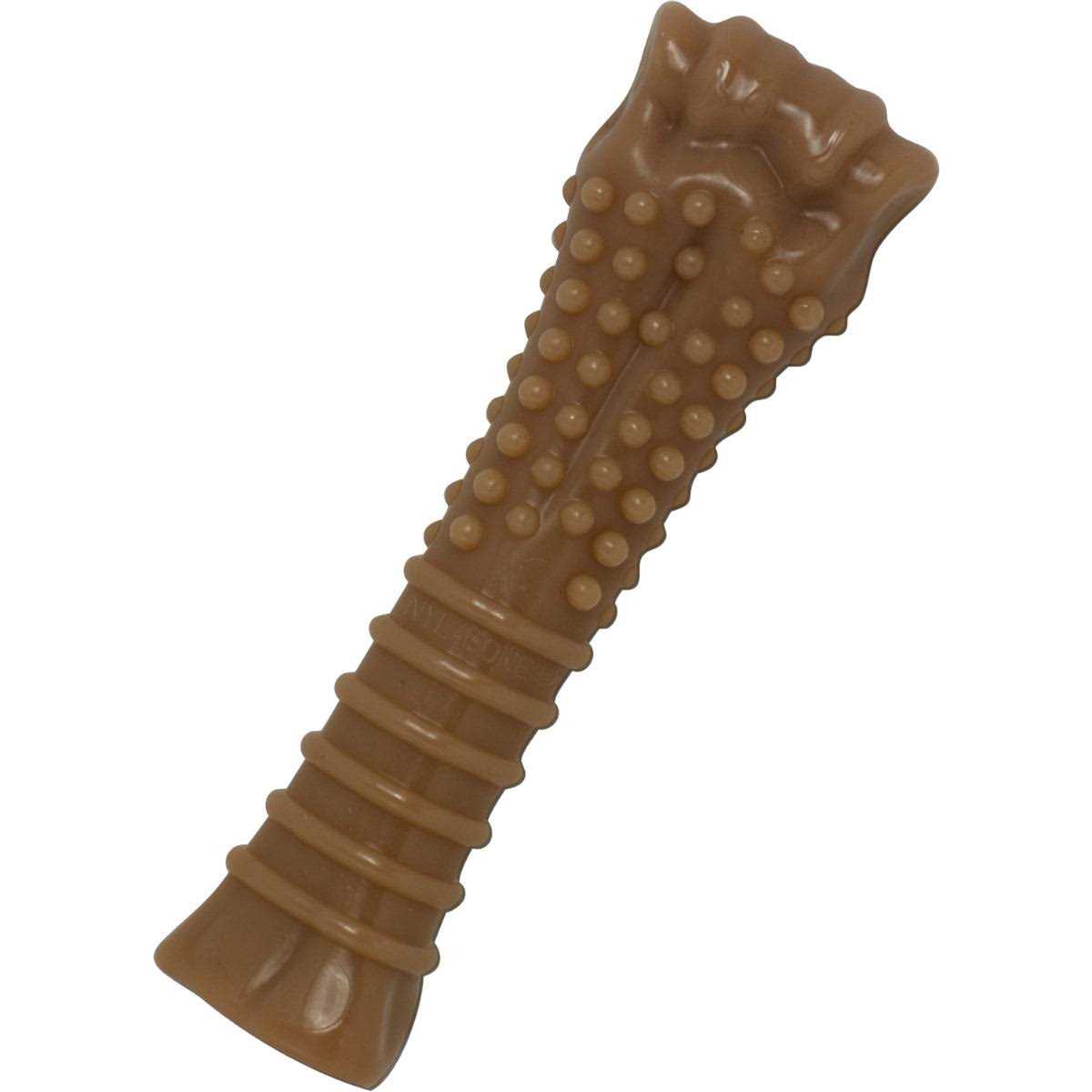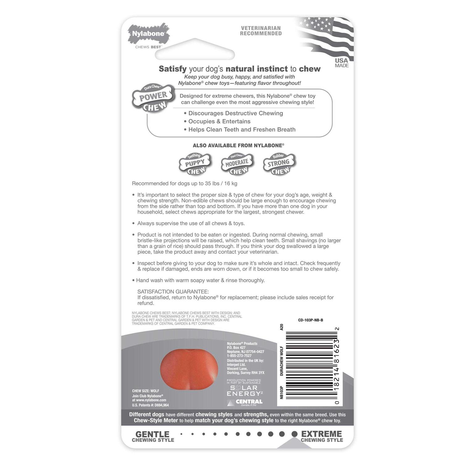 These super tough Durable Flavored Dog ChewBones can satisfy a dogs desire to chew and help clean teeth and gums at the same time. These flavored nylon chews are for powerful chewers and are USA made. Theyre designed for power chewers. They come in different sizes to suit your dog. Therapeutic, flavor-infused bones are made of strong, virgin Dupont nylon Safer than abrasive bones, rawhide products, and plastic toys Wont splinter or come off in pieces that your dog could choke on Made in USA Made for power chewers These super tough Durable Flavored Dog Chew Bones are perfect for strong chewers. Theyll satisfy your dogs need to chew.