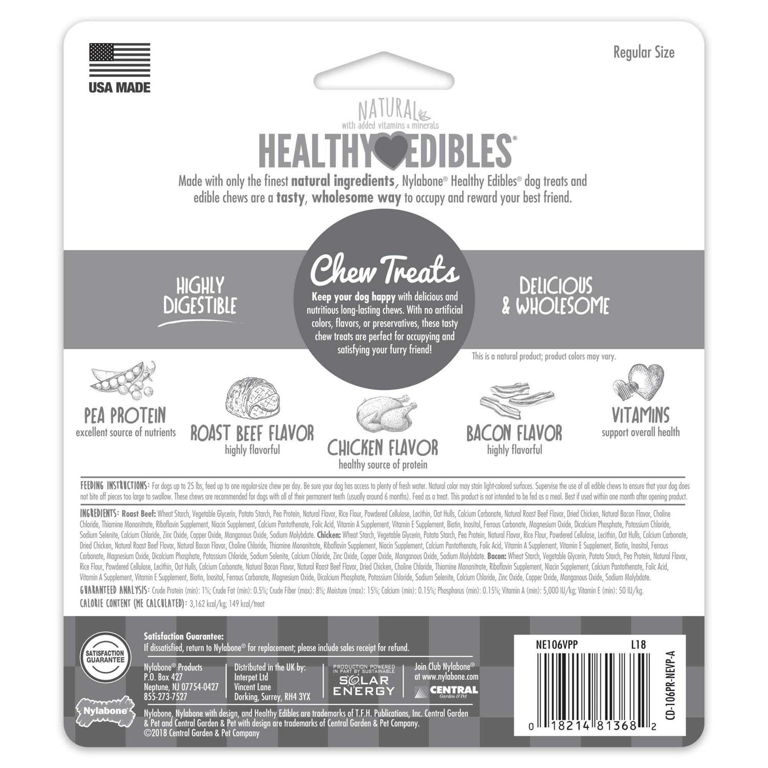 - Nylabone Healthy Edibles Great-Tasting formula made of natural ingredients with no added sugar or salt and no artificial color