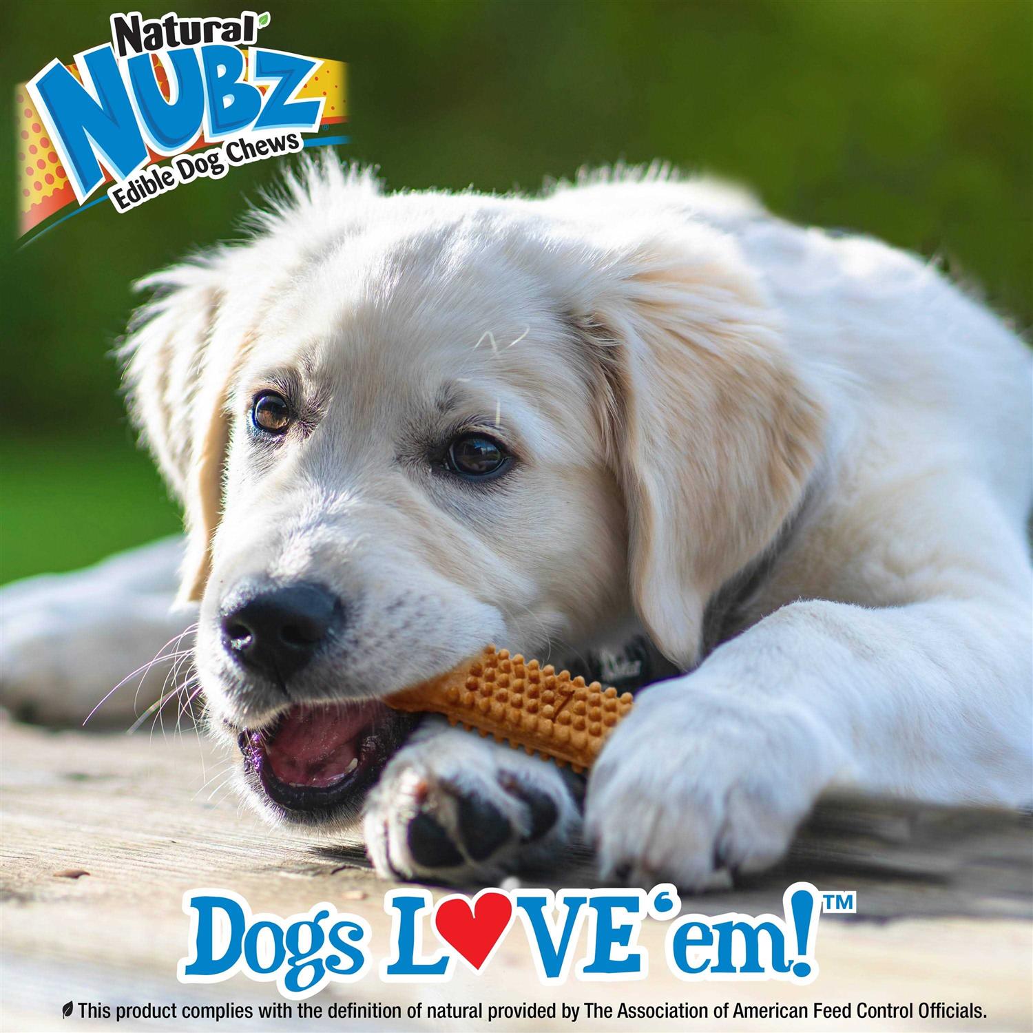 Nylabone has been a leader in the pet industry for more than 60 years, creating the very best dog chew treats in a variety of fun flavors and shapes. Puppy Natural Nubz chew treats are specially formulated for pups 3 months and older! Made with DHA Omega-3, these healthy puppy treats aid in brain and eye development as your furry friend grows. They include calcium for your puppy’s teeth and bones plus flaxseed to help maintain their skin and coat health. Each highly digestible dog treat is made with natural ingredients and free from artificial flavors, colors, and preservatives for a wholesome, delicious chewing experience. Plus, every long-lasting puppy treat features a break point for portion control and more treating occasions. These treats also feature dental nubs to help clean teeth and gums as pups chew. Satisfy your new best friend with these tasty dog treats for puppies!