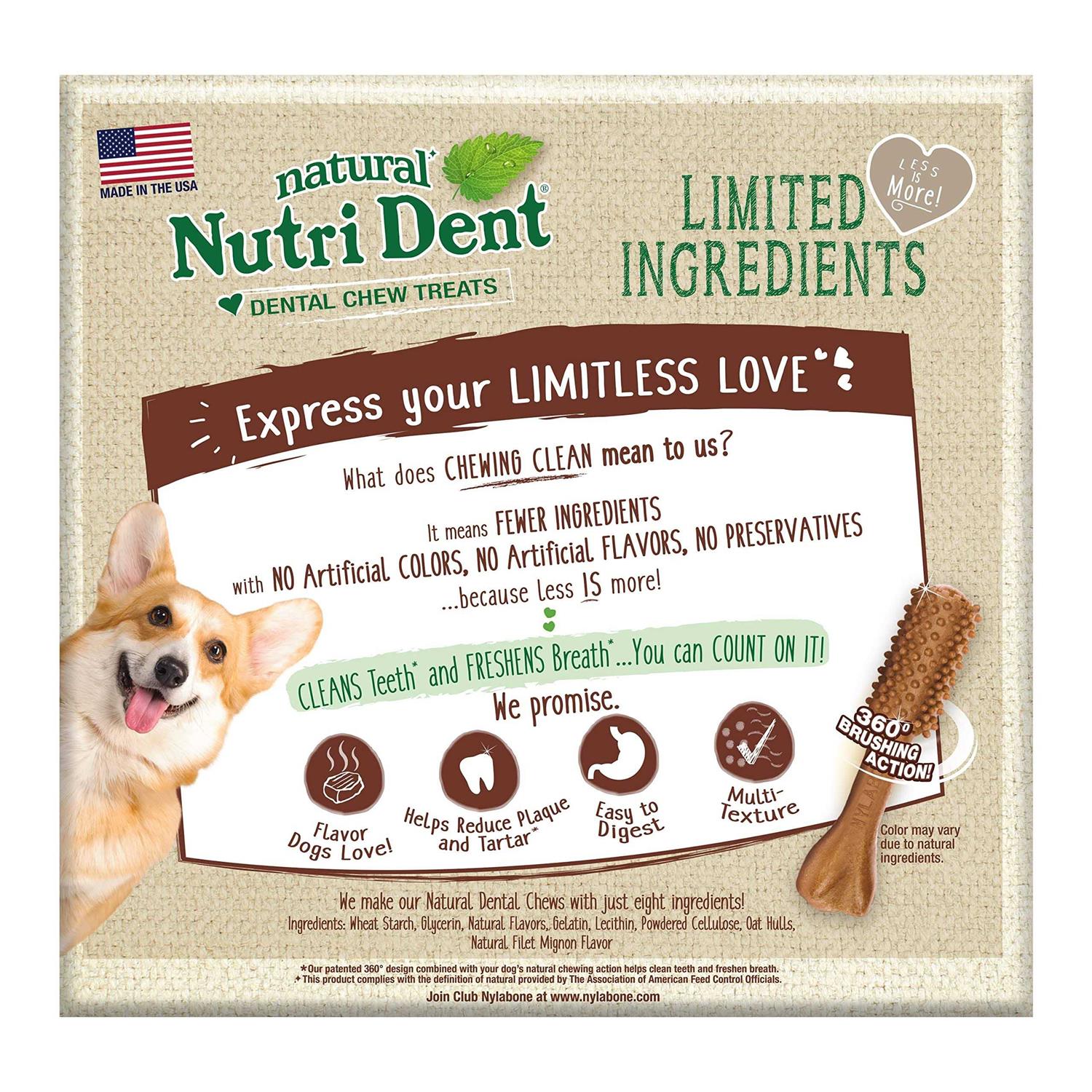 Nylabone Nutri Dent Limited Ingredients Medium Dog Dental Chew, Filet Mignon – 40 count