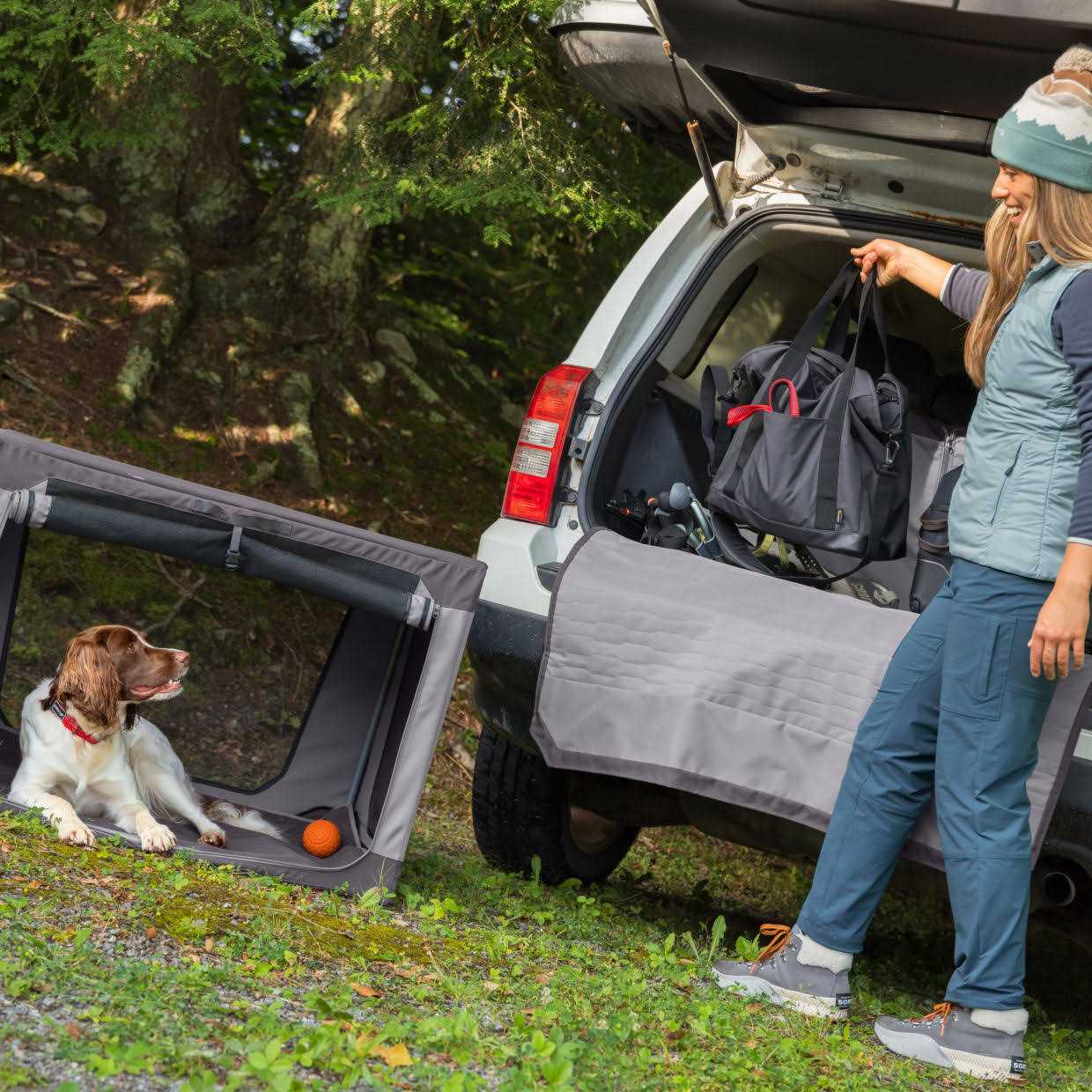Your dogs home on the road, the Folding Travel Crate is part of our Tough Trail Collection designed to make getting out with your dog easy. Offering at-home comfort with on-the-road ease and flexibility, our versatile no-rattle crate folds for easy storage and features a padded, removable insert for your dogs comfort. Plus, it features stronger mesh, two access points, and increased ventilation, with Durable Water Repellent (DWR) 100% recycled polyester fabric thats easy to clean. Not recommended for puppies or dogs that chew.
