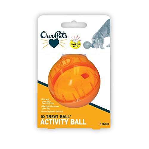 Fill with your dog’s favorite treats, promoting active and healthy feeding Adjustable feeding difficulty levels continue to challenge your dog as they learn As your dog plays and the rolls the ball, treats will fall out to reward them for being active Twists apart for easy cleaning Ideal for small to medium sized dogs (colors may vary) The OurPets IQ Treat Ball keeps your dog mentally stimulated, physically active, happy and healthy. This toy reduces boredom and destructive behavior through healthy play and exercise while developing and maintaining your dog’s physical alertness. Just fill the toy with your dog’s favorite treats, adjust the level of difficulty, and watch them have a fun, interactive feeding experience.