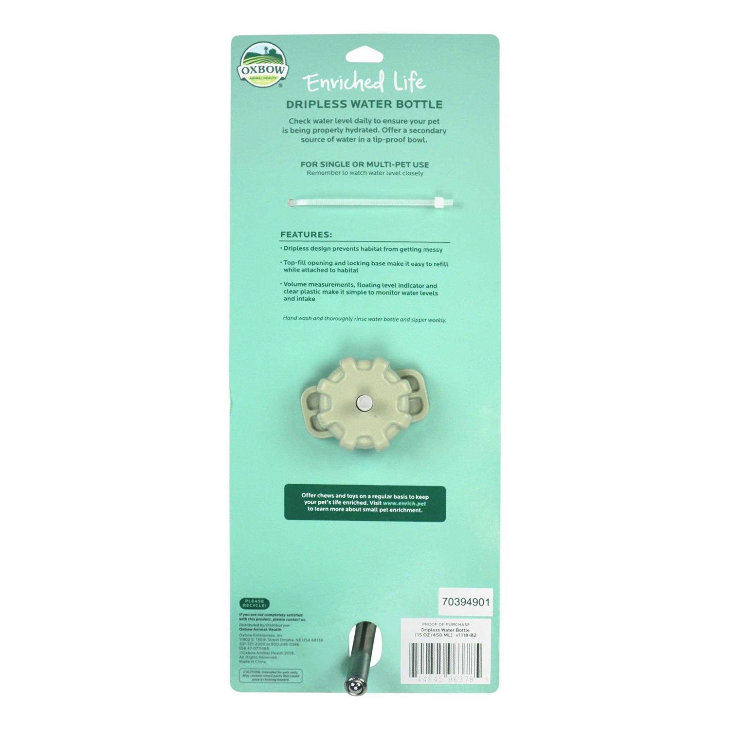 Oxbow Enriched Life Small Dripless Water Bottle – 15 oz