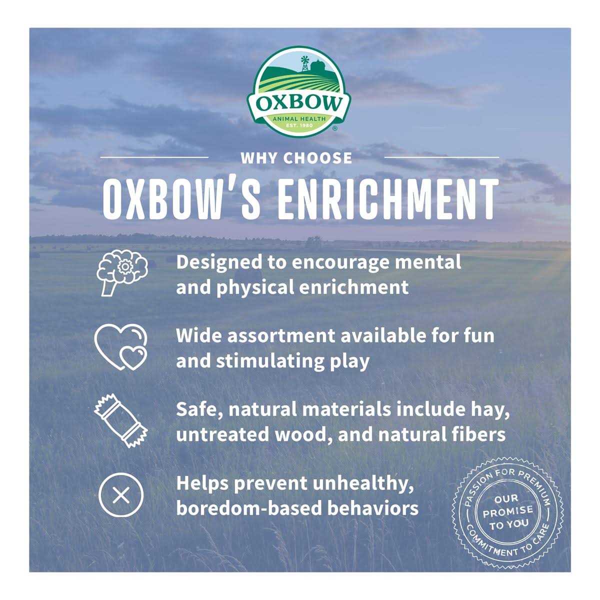 Oxbow 15-ounce dripless water bottle helps prevents habitat from getting messy with water spillage. Top-fill opening and locking base make it easy to refill while attached to habitat. Floating level indicator helps with daily water checks. Best for guinea pigs, dwarf rabbits and other small animals and is designed for single or multi-pet use. Enriching your pet’s daily life starts with supporting natural behaviors such as exploring, playing, hiding, and chewing. Oxbow Enriched Life is designed with these natural behaviors in mind and is constructed from 100% pet-safe materials, allowing you to nurture your pet’s mind and body is safe and fun ways every day.