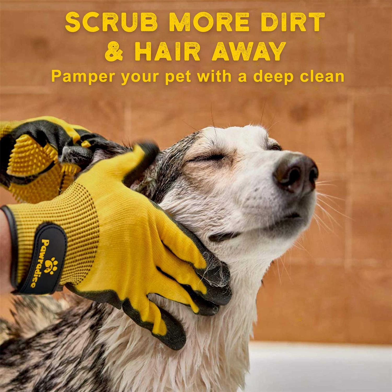 Pawradise Pet Grooming and Bathing Gloves – Effective Pet Hair Remover for Cats, Dogs & Horses – Long & Short Fur – Deshedding Gloves for