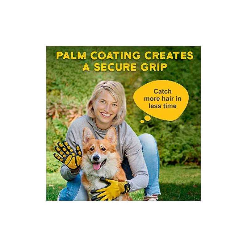 4-IN-1 GROOMING GLOVES – It’s paw-your-pet-‘o-clock,fellas! Our dog and cat gloves for grooming make it a breeze to brush, de-shed, bathe, and massage your furry friend at home. FIT FOR DEEP DESHEDDING – You can never have enough pet accessories! The long nubs on the fingers of these grooming gloves easily remove deep knots and loose hair for a sleek and shiny fur finish. SAFE FOR PET’S SKIN – The grooming gloves have “nubs” in the fingers for collecting hair. The design mimics the caring touch for a relaxing pet massage for both cats and dogs. UP FOR EVERY GROOMING TASK – Our grooming gloves for cats provide an amazing massaging experience and fit most hands and work on all hair types. Your furry pal will be asking for more! HAIR-FREE HAVEN – Rejoice, frustrated pet parents! A hair-free habitat is now possible with this pet grooming glove set. It breezily removes your pet’s matted and unwanted fur at home.