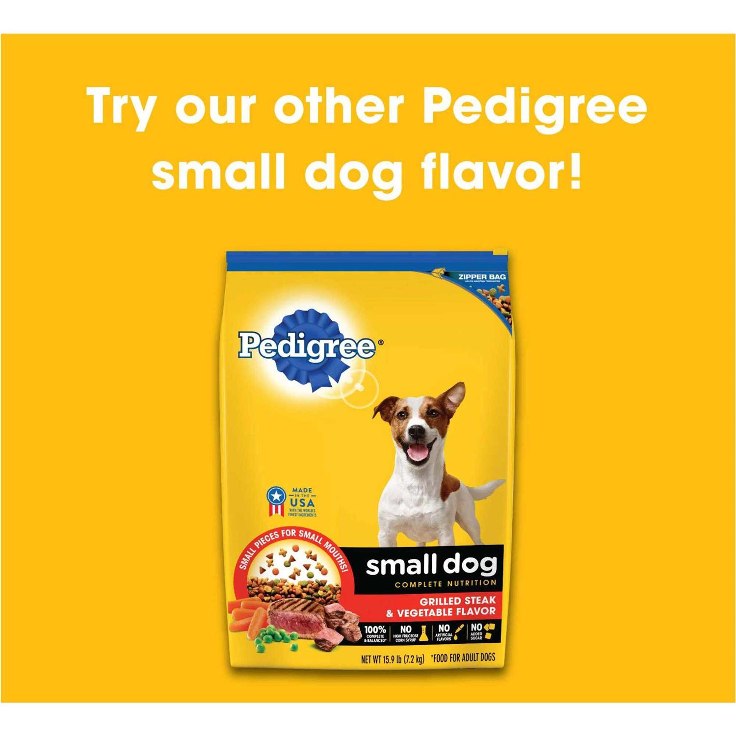 - Contains one (1) 3.5 lb. bag of PEDIGREE Small Dog Complete Nutrition Adult Dry Dog Food Roasted Chicken, Rice & Vegetable Flavor