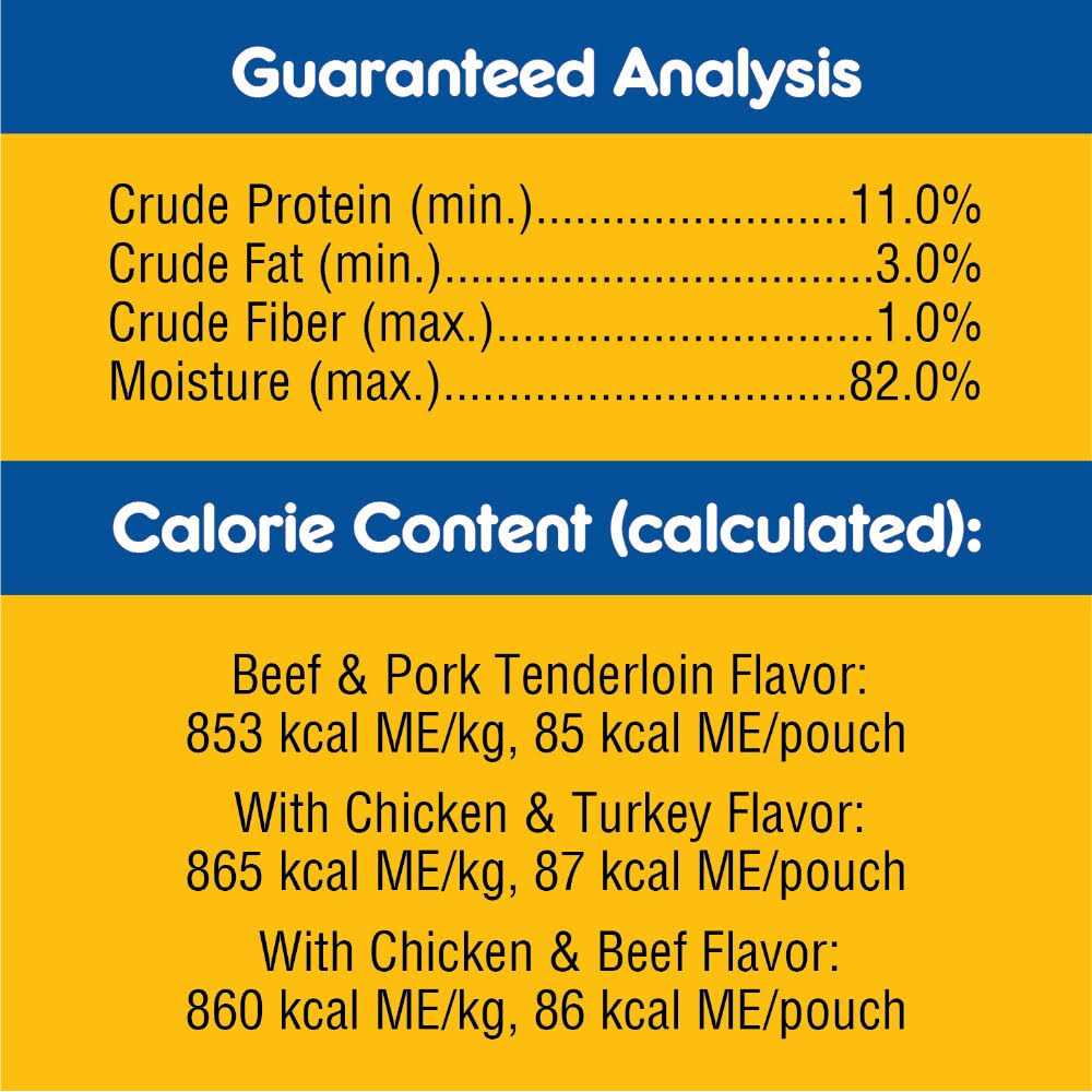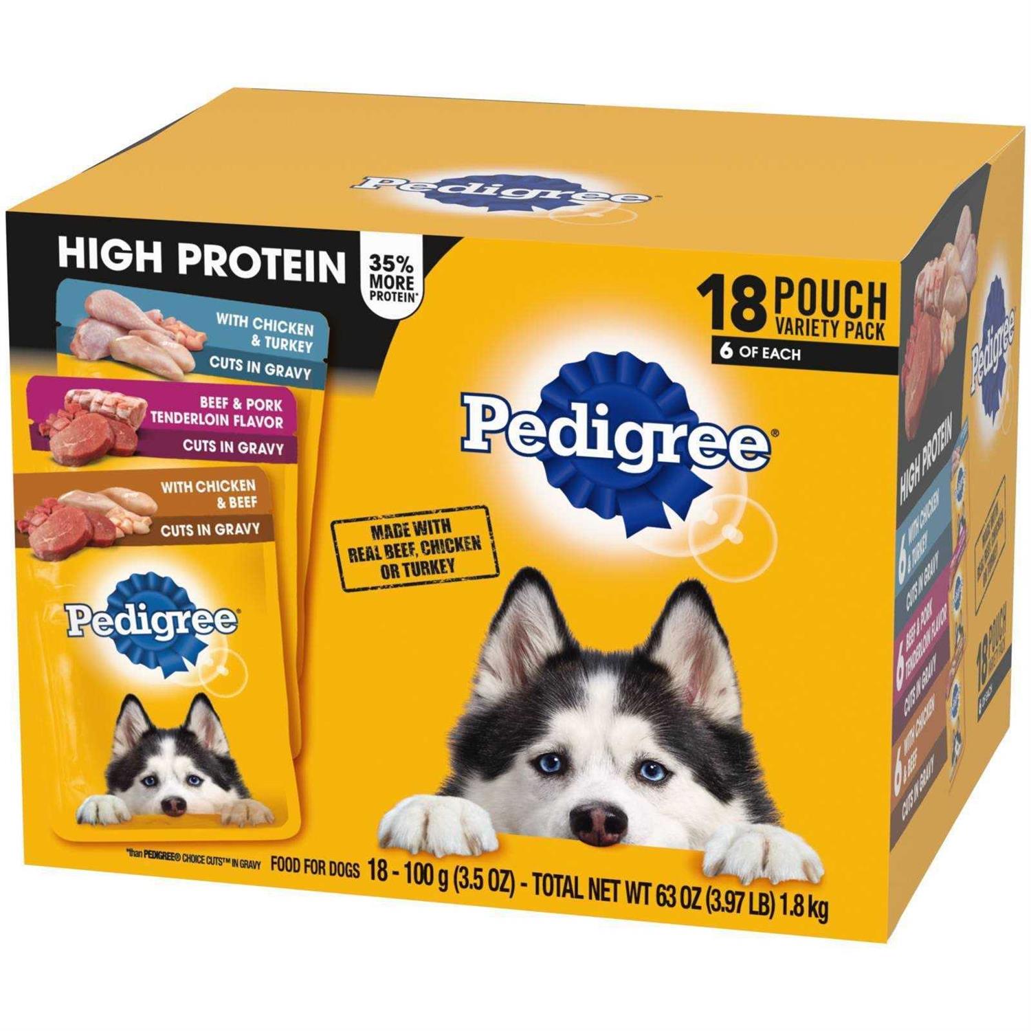 Give your athletic dog the nutrition they need with PEDIGREE High Protein Wet Dog Food Cuts in Gravy Pouches. This high-protein wet dog food is made with real cuts of chicken, turkey or beef without any artificial flavors, high fructose corn syrup or added sugar*. Feed them this nutritious meal alone or change up their dinner routine by mixing with their favorite dry dog food. Feed the good.