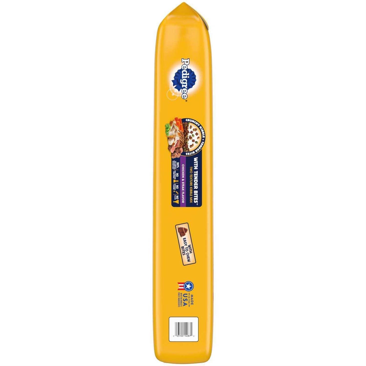 Every dog deserves the best thats why PEDIGREE With Tender Bites Dry Dog Food delivers a wholesome, high-quality recipe to bring out the best in your pup. This dry food has the antioxidants, vitamins, and minerals they need to be happy and healthy for life, plus the meaty chicken and steak flavor they crave. With tender, easy-chew bites mixed in with crunchy dog kibble, it delivers 100% complete and balanced nutrition for adult dogs. For an extra boost, its also enriched with omega-6 fatty acids and zinc to help nourish skin and help your pup maintain a sleek, shiny coat. Plus, it delivers whole grains and natural fiber to help support healthy digestion. Dogs bring out the good in us. PEDIGREE brings out the good in them. Feed the good.